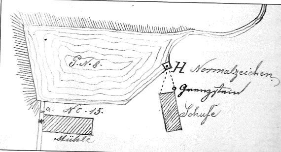 Nad mlýnem byl rybník Hortafteich, který patřil borské vrchnosti. Z něj byla voda přiváděna ke mlýnu. Přímo nad mlýnem byla vodní nádržka, do které tekla voda z přepadu rybníka.