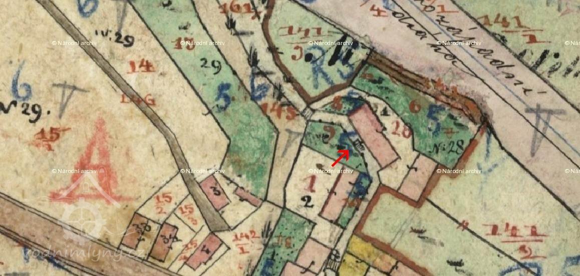 V polovině 19. století měl mlýn 2 vodní kola na spodní vodu.