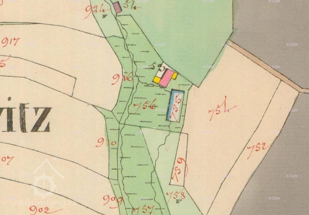 Sčítání lidu 1900: mlynář František Hanuš (nar. 25.10.1853 Žernovice) - na mlýně od 1890, manželka Anežka (nar. 1860), děti Terezie (nar. 1894), Stanislav (nar. 1895), Marie (nar. 1897), Josef (nar. 1900), švagrová Marie Krotká.