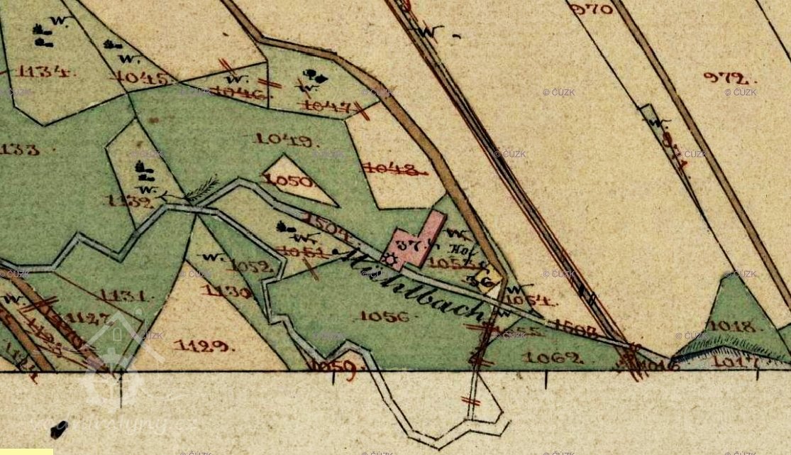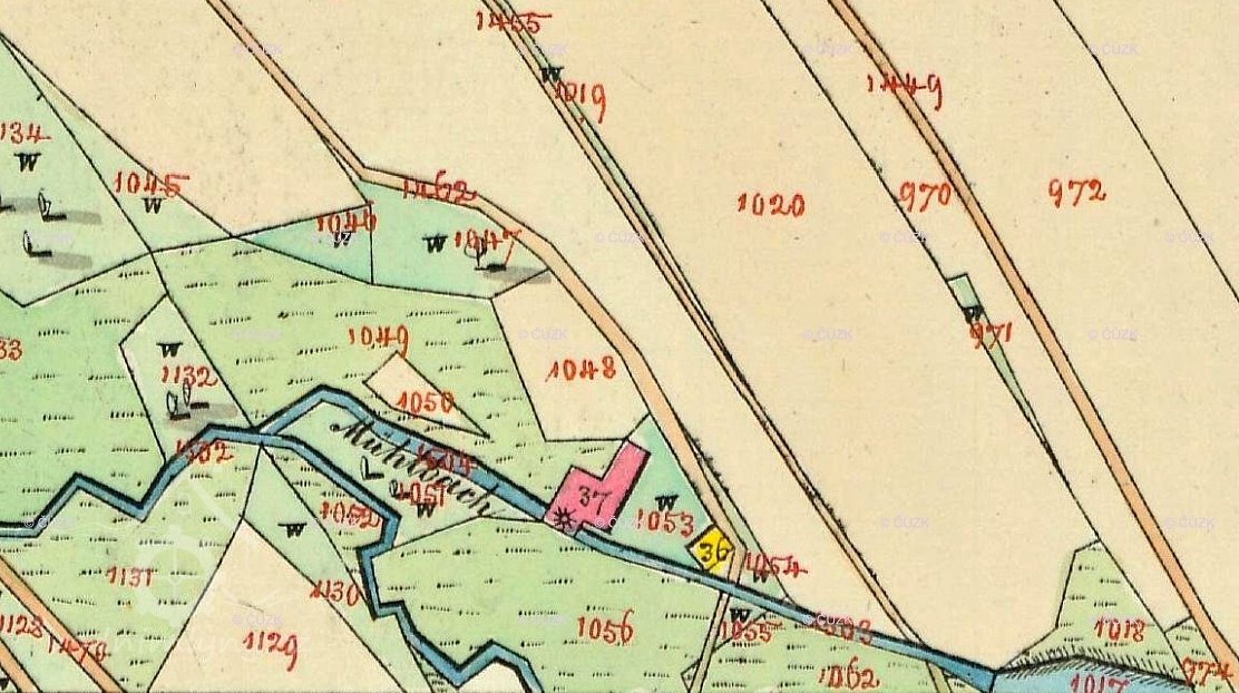 Popis1930: 1 kolo na svrchní vdu, hltnost 0,069 m3/s, spád 4,5 m, výkon 2,7 HP