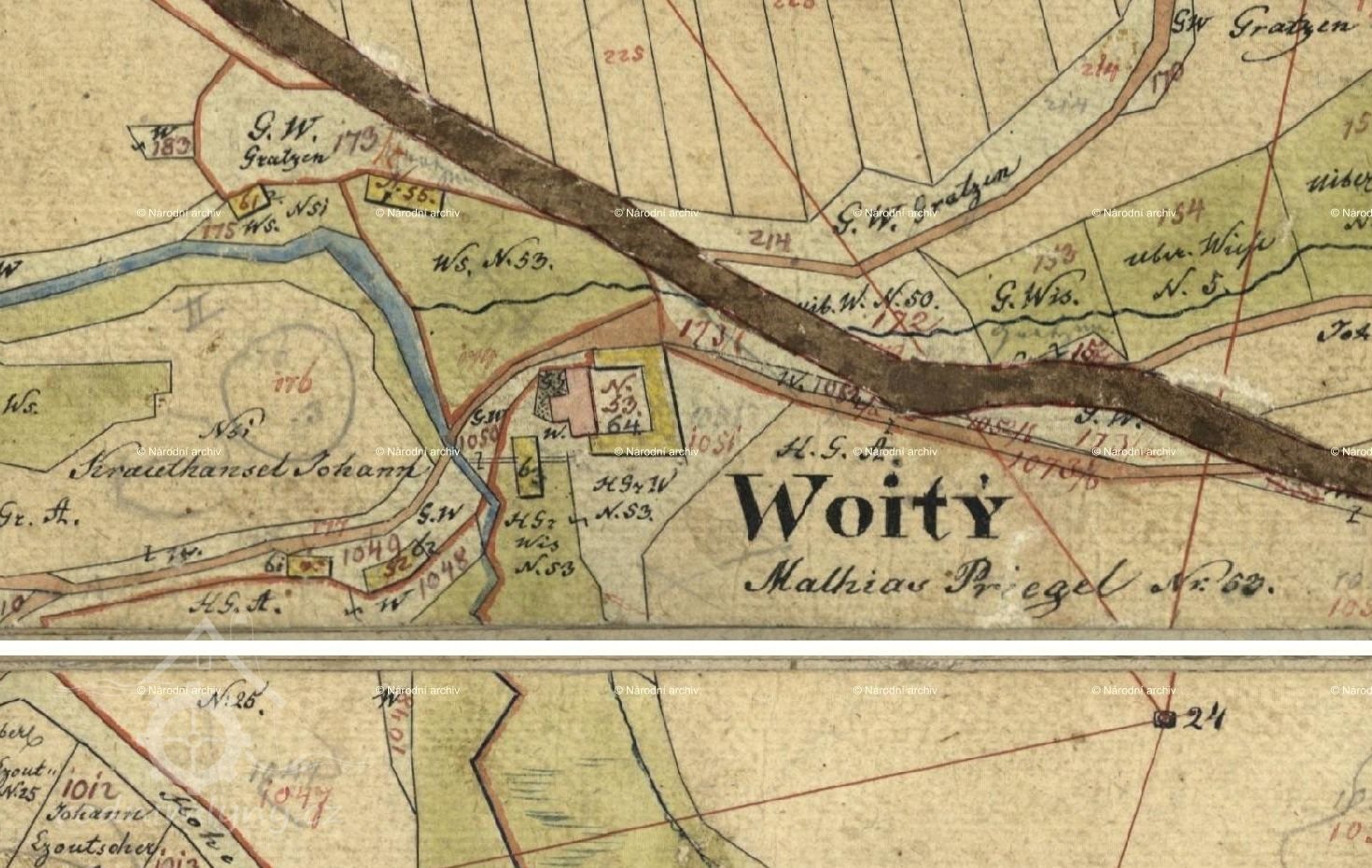 1654 Berní rula: Tomáš Tora, vlastní o 1 kole, 20 str. rolí, 8 ks hov. dobytka, 4 ovce, 2 prasata (není známo, na kterém mlýně)