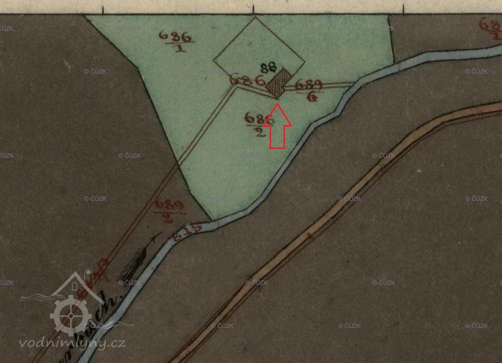 Na mapě II. vojenského mapování je zde zakreslen vodní provoz s označením Stock M. M., tedy moučný mlýn. Na indikační skice a na originálně mapě stabilního katastru z roku 1838 je dokreslen asi 300 m dlouhý náhon se začátkem pod výše položeným mlýnem Untere Stockmühle I čp. 4 a menší budova ze spalného materiálu na pozemku č. 77. Historické prameny ani vodní kniha se o něm nezmiňují. V místě, kde měl stát, o něm svědčí pouze prohlubeň, stopy zdiva a náhon.