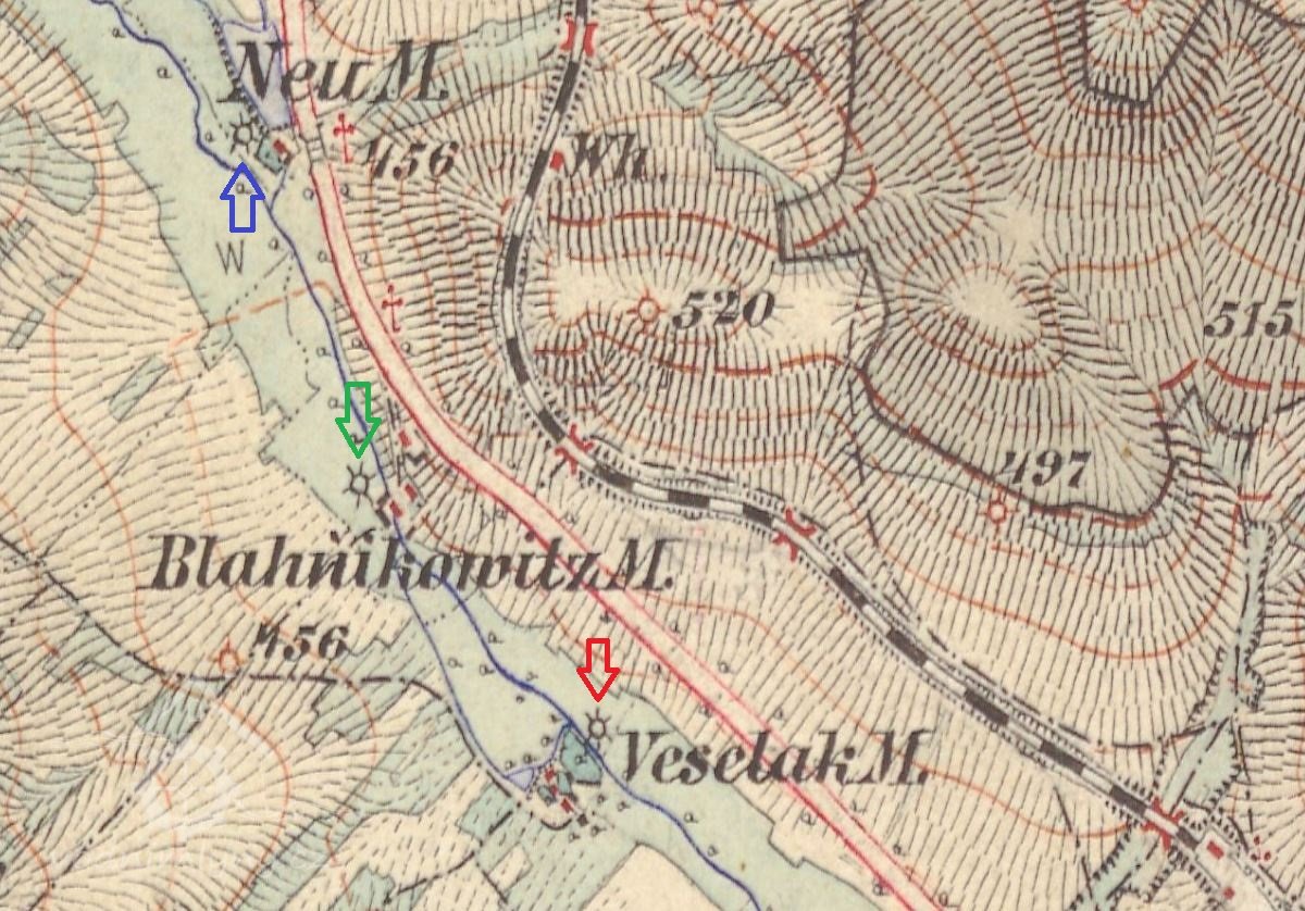 Popis1930: 1 kolo na svrchní vodu, hltnost 0,092 m3/s, spád 3,1 m, výkon 2,4 HP
