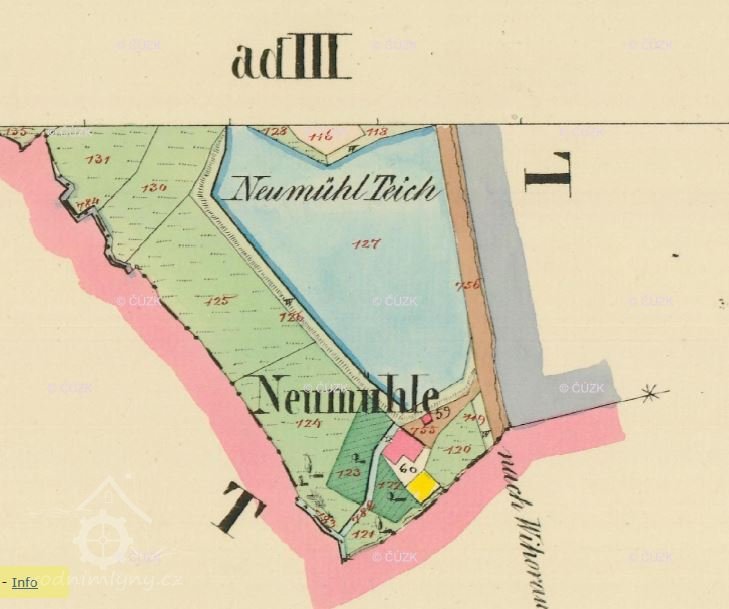 Mlýn dohledán na map I. vojenského mapování. V současné době slouží k bydlení.