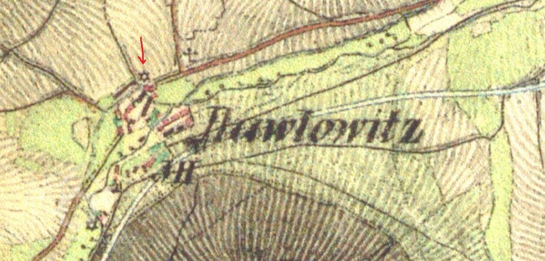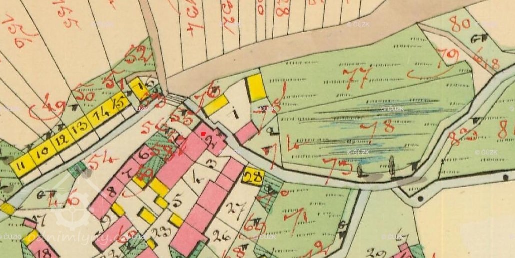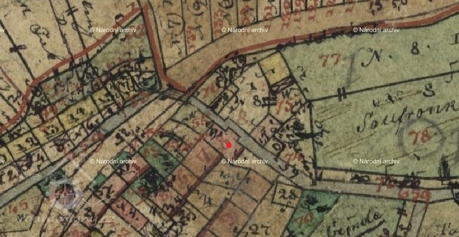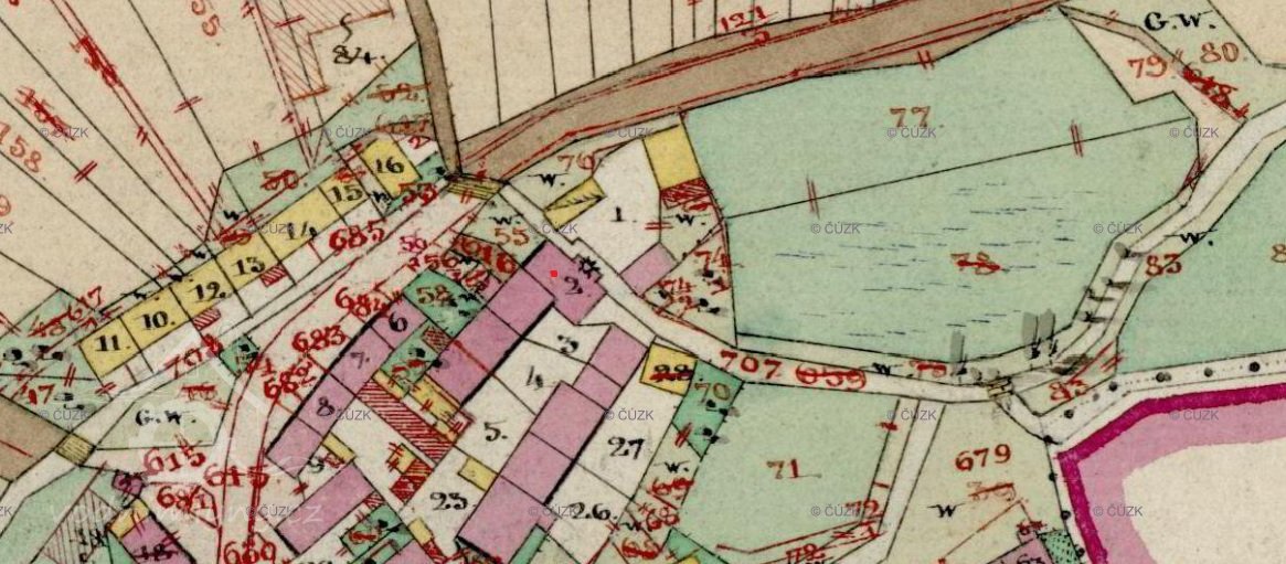 Zobrazen na I. vojenském mapování – josefském ( 1764-1768 a 1780-1783 ). Originální mapa, indikační skica i otisk stabilního katastru v roce 1838 zaznamenávají nespalnou budovu s jedním kolem, majitelem Václav Solfronk.