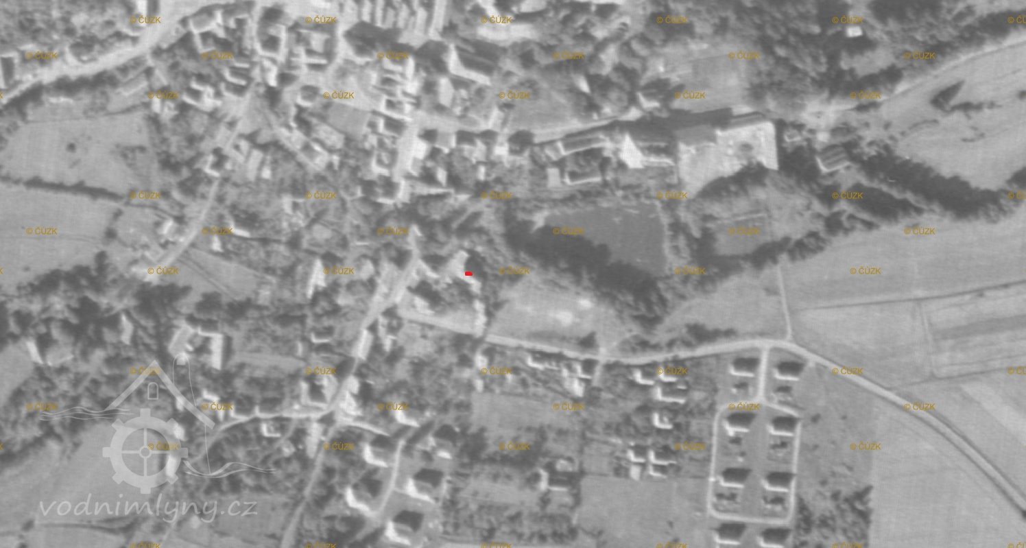 1964 – podle nepříliš ostrého leteckého snímku zřejmě ještě stojí.