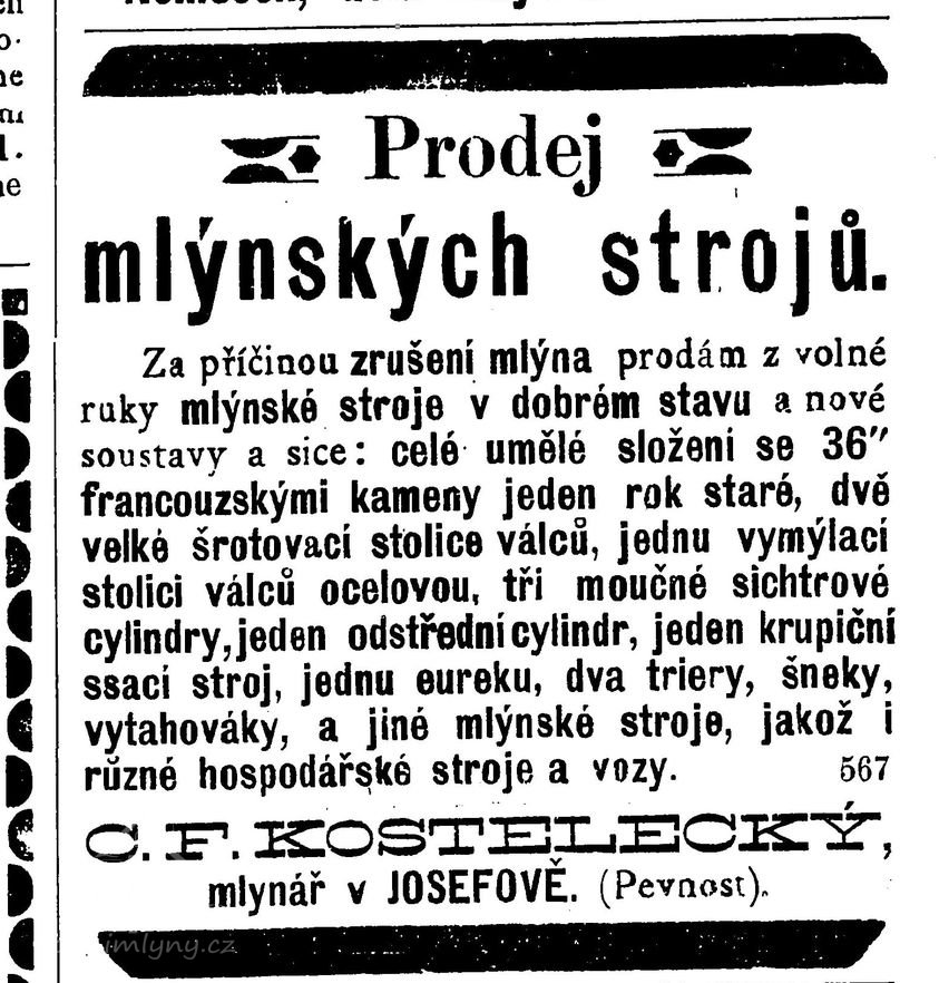 K 1. 1. 1892 byl mlýn úplně zrušen, 25. dubna se konala dražba na veškeré zařízení.