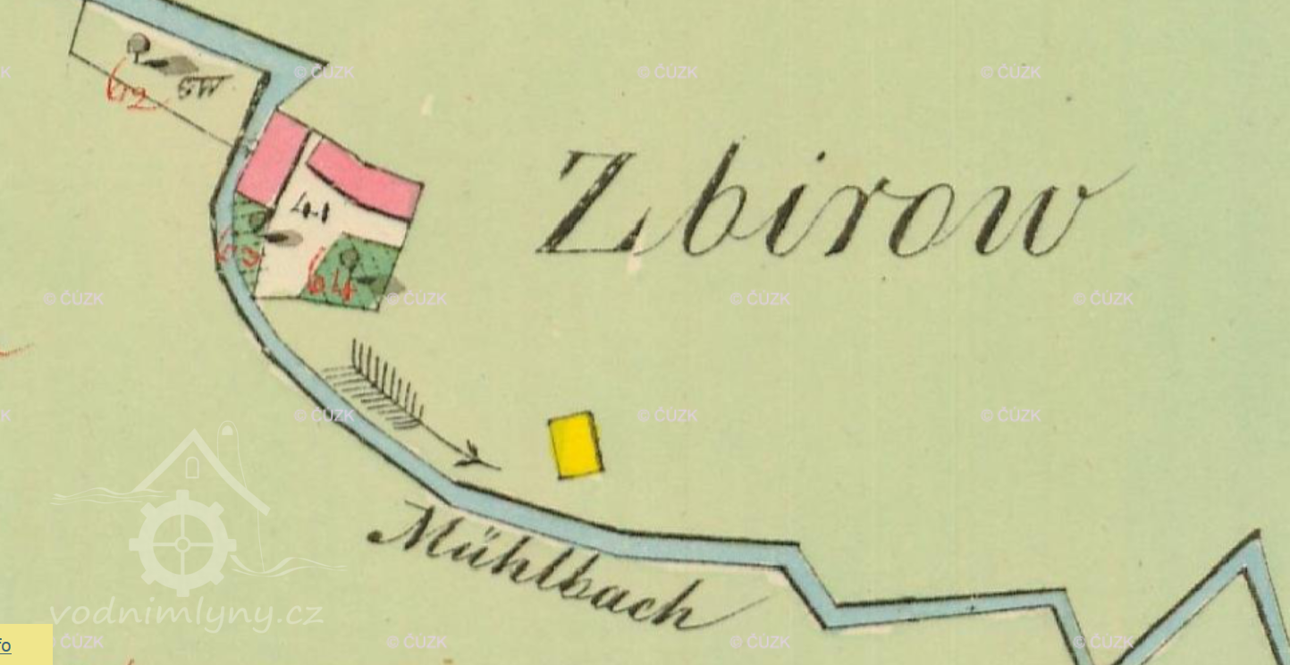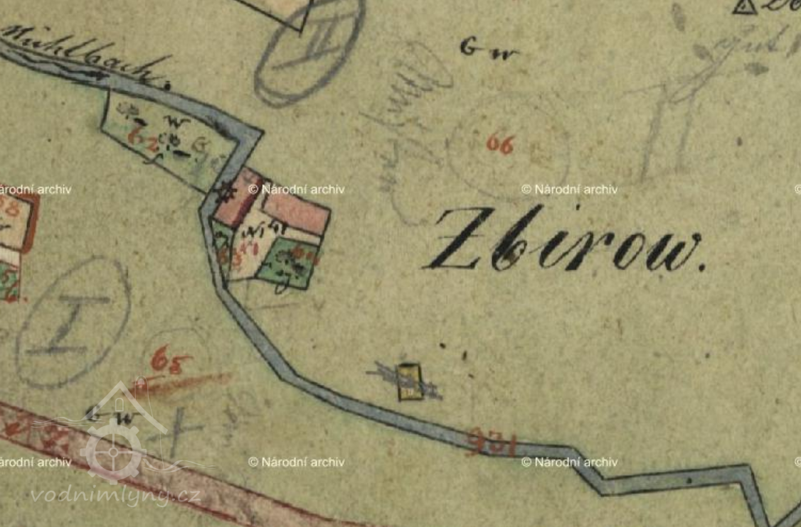 1654 Berní rula: Pavel Mlynář, vlastní mlejn o 1 kole, 22 str. rolí, 7 ks hov. dobytka, 2 prasata