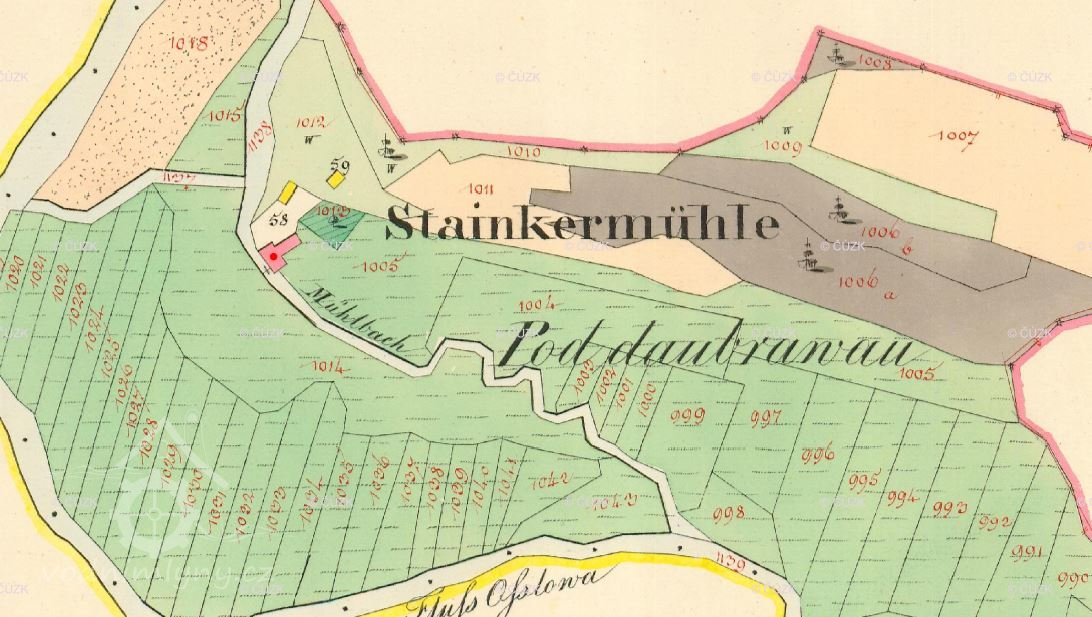 30.9.1747 zakoupil mlýn s 20 měrami (4 ha) pozemků Karel Pružina za 250 zl. při roční činži 107 zl.