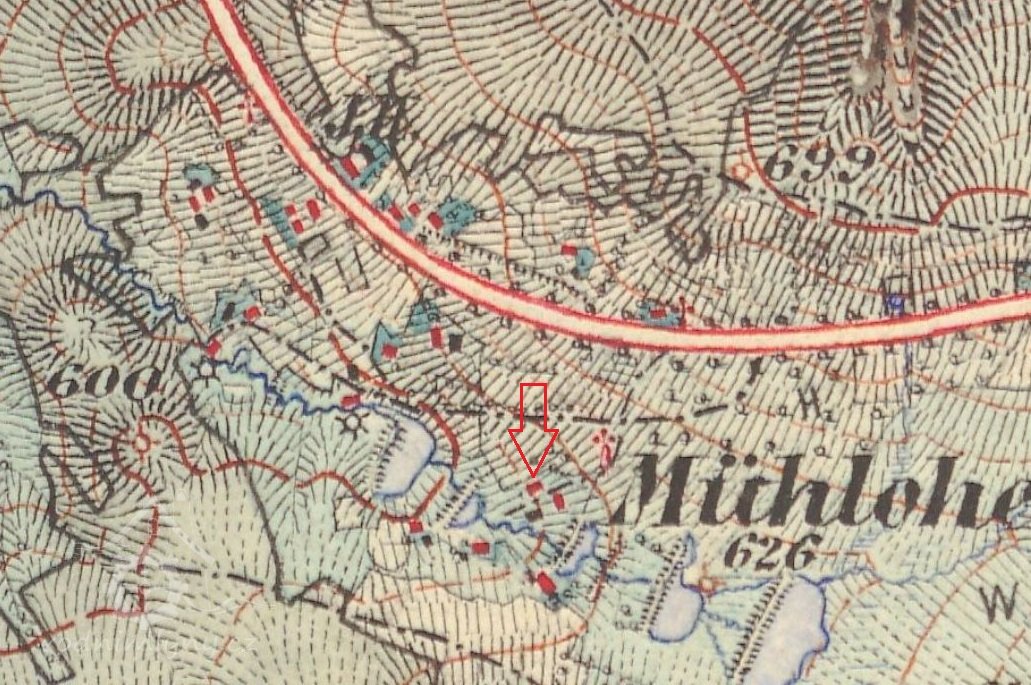 Sčítání obyvatel 1869 – na mlýně je stále mlynář Franz Nadler (narozen 1825), žil zde se svojí druhou manželkou Dorotheou (1836) a šesti dětmi. Synové Ferdinand (1853) a Franz (1854) se učili mlynářskému řemeslu. Ostatní děti, Josef, Theresie, Anna a Veronika, byly mladší. V hospodářství mlýna byl 1 valach, 1 vůl a 3 krávy.