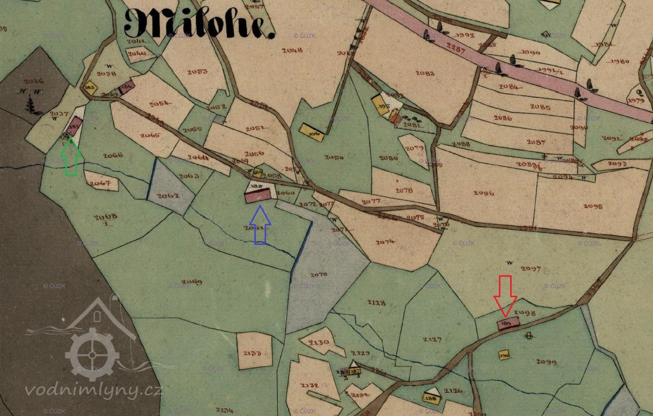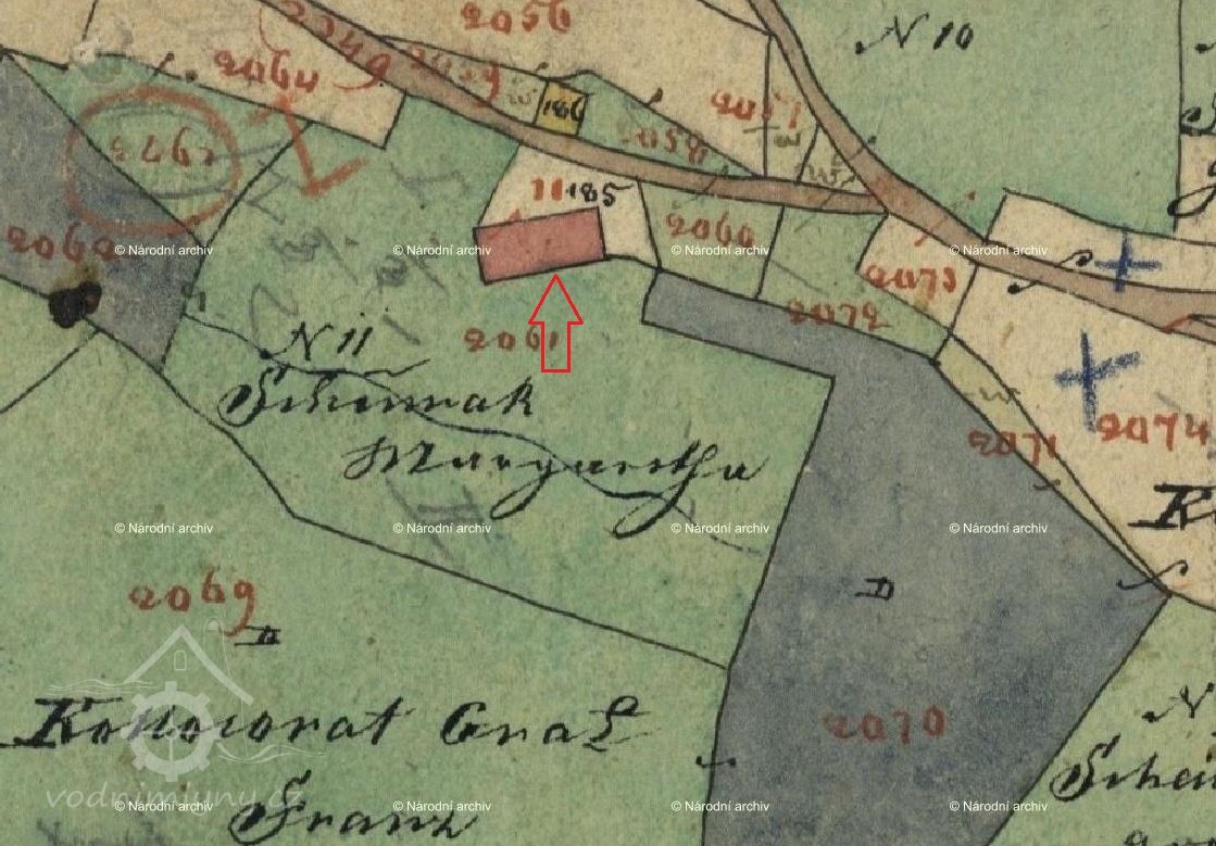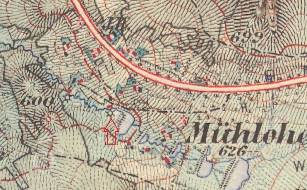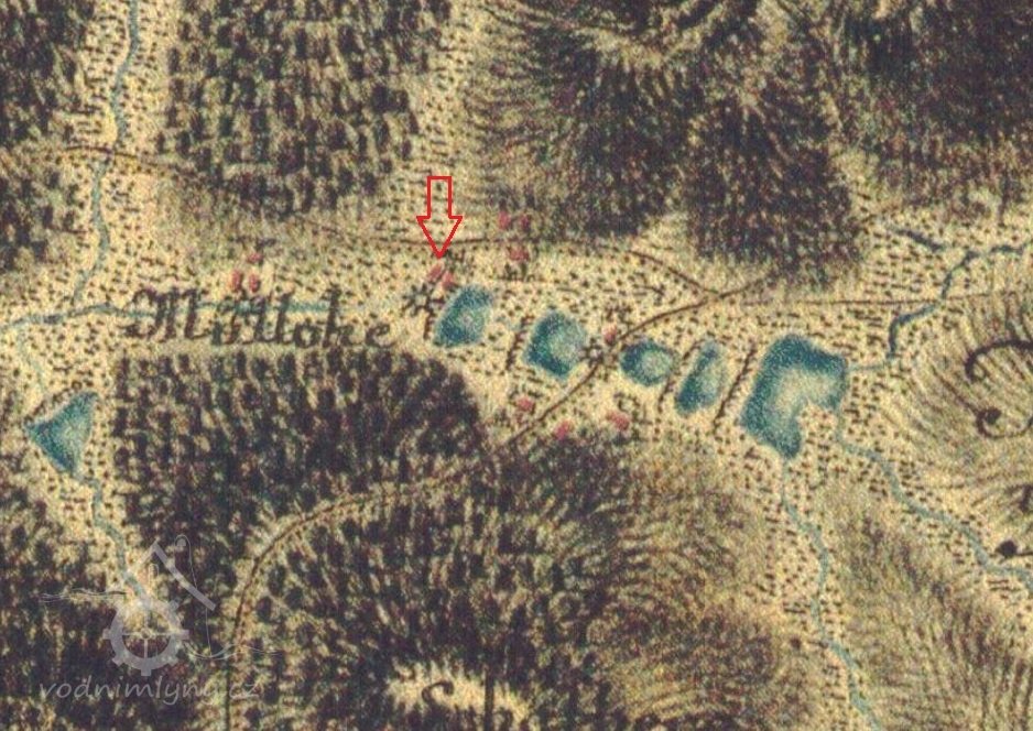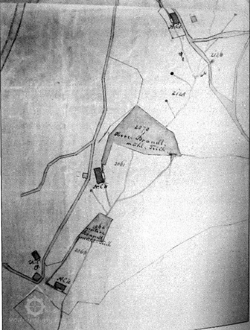Na mapě stabilního katastru z roku 1838 je nad mlýnem rybník nazvaný Obere Brandl Teich, jako majitelka je zmiňována Margaretha Schumak, vdova po Michaelu Schumakovi.
