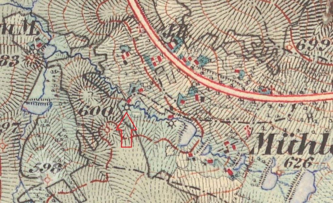 Sčítání obyvatel 1869 – mlynář Georg Diebl (narozen 1883) s manželkou Katharinou (1832) a dětmi narozenými v letech 1855 – 1867 Georgem, Antonem, Sussanou, Theresií, Annou a Marií. Ve stájím u mlýna choval mlynář 1 krávu, 2 voli a 2 vepře.