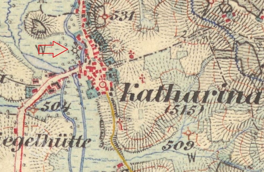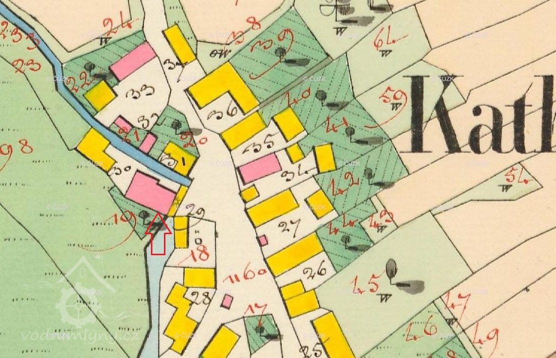 Dle sčítání v roce 1880 zde hospodařil mlynář Johann Grötsch (1851), původem z bavorského Waidhausu. Na mlýn se přiženil, vzal si mladší dceru Margarethu Säcklovou (1855)., s níž měl v roce sčítání již 2 dcery, Margarethu (1877) a novorozenou Marii (1880). Sčítání zde eviduje další osoby, pekařského tovaryše s manželkou a dcerou, mlynářského učně, mlynářského pomocníka s manželkou. V hospodářství mlýna bylo 13 kusů hovězího dobytka, 1 kůň a 2 prasata.