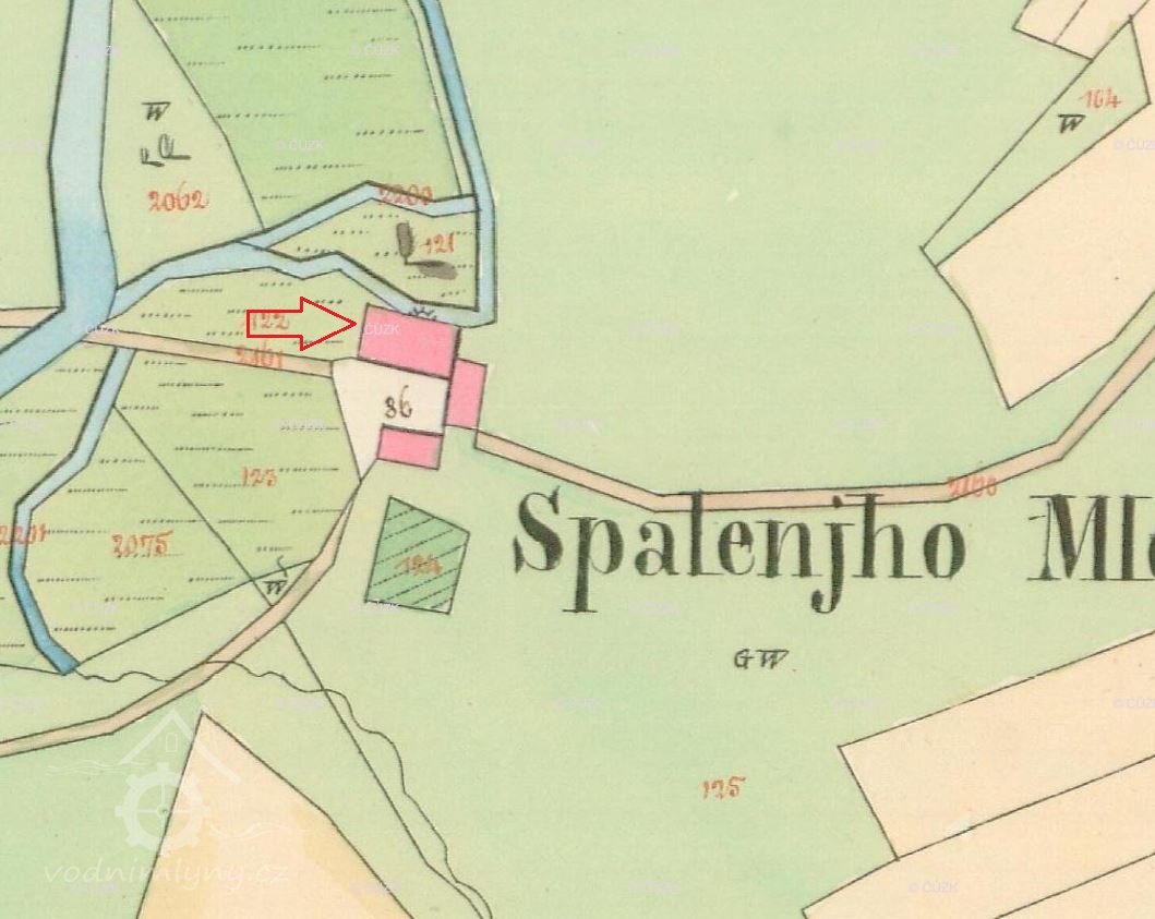 Mlýn je zaznamenán již na mapě I. vojenského mapování z let 1764 – 1768. Na mapách stabilního katastru z roku 1838 je zakreslen jako zděná obdélníková budova s dalšími dvěma menšími stavbami, kter= tvořily hospodářské zázemí mlýna. Samostatná obytná budova byla přistavěna později.