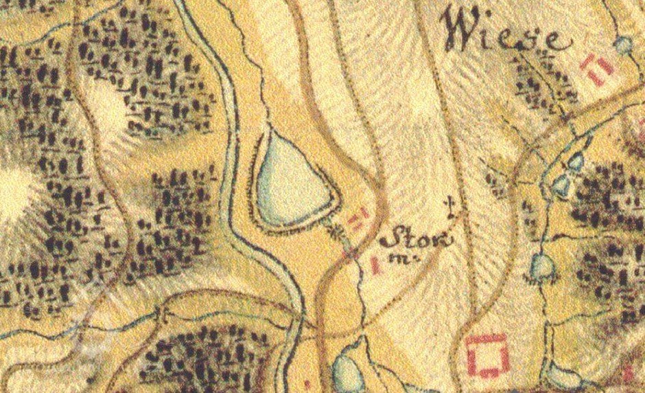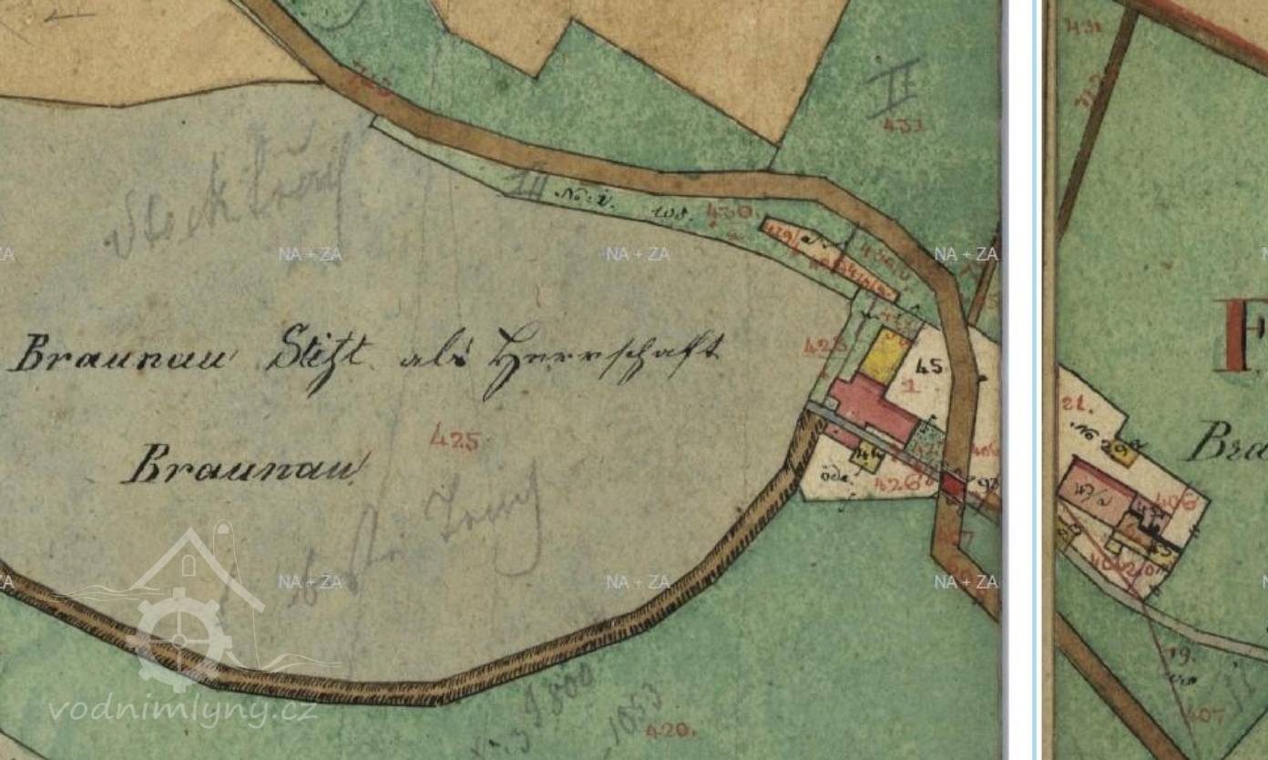 Směrem na Starostín stál mlýn "Stockmühle". Již před třicetiletou válkou v roce 1608 byl jako majitel uváděn Josef Teuber.