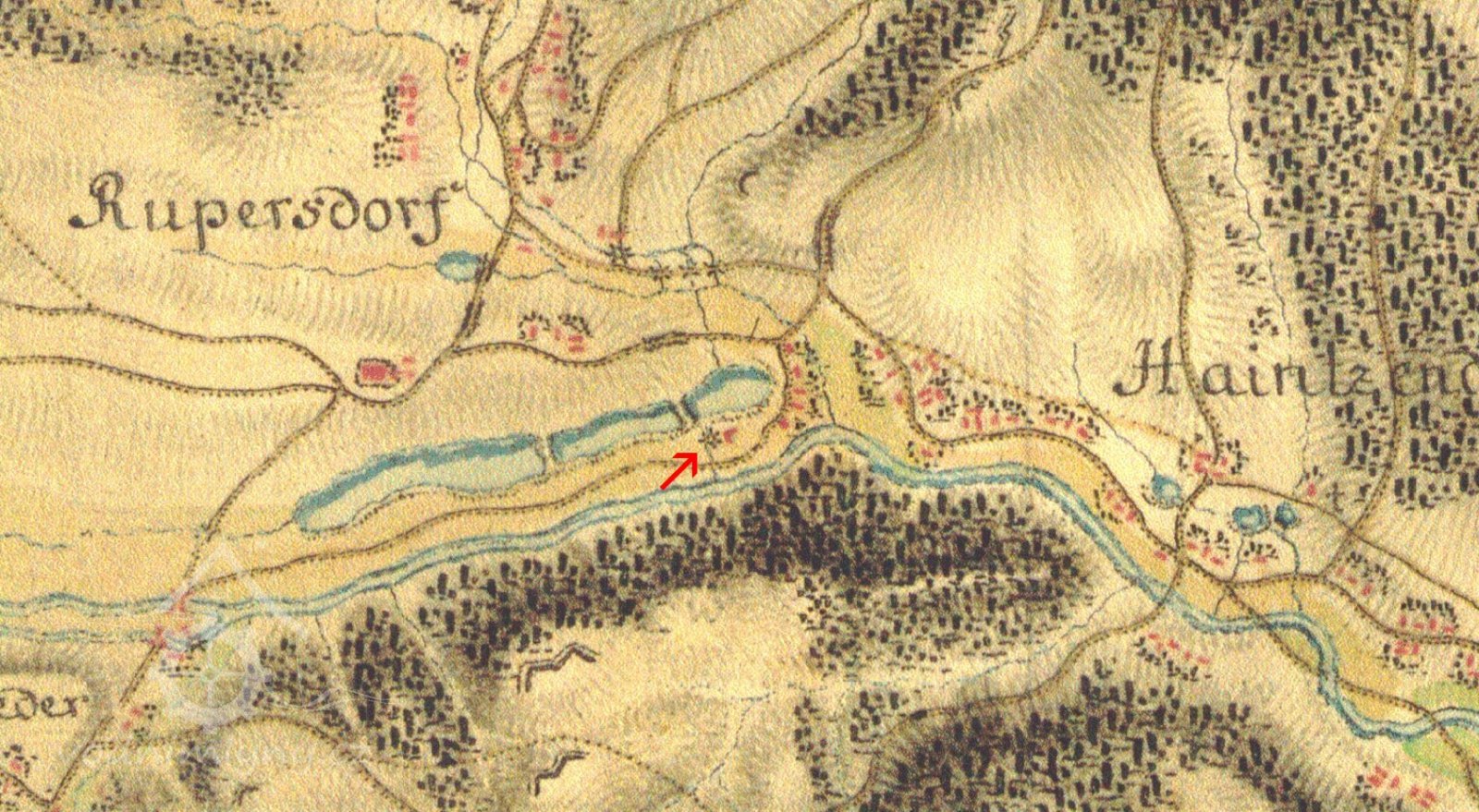 K mlýnu Teich náleží tři rybníky, odleva: kapří, prostřední a krajní. Mlýnský náhon byl přes střední rybník z Ruprechtického potoka.