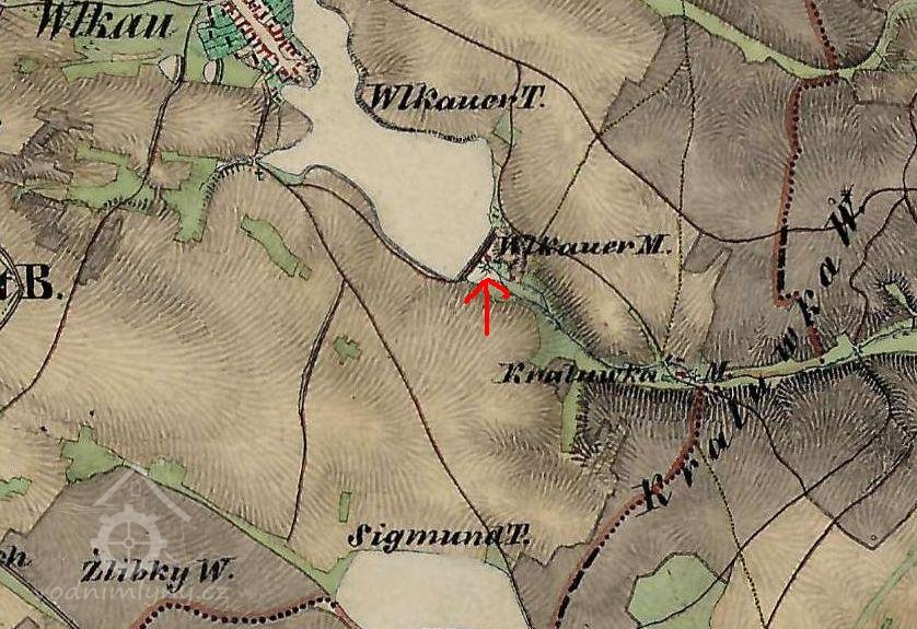 První písemná zmínka o Vlkovském mlýně pod hrází rybníka je z roku 1573.