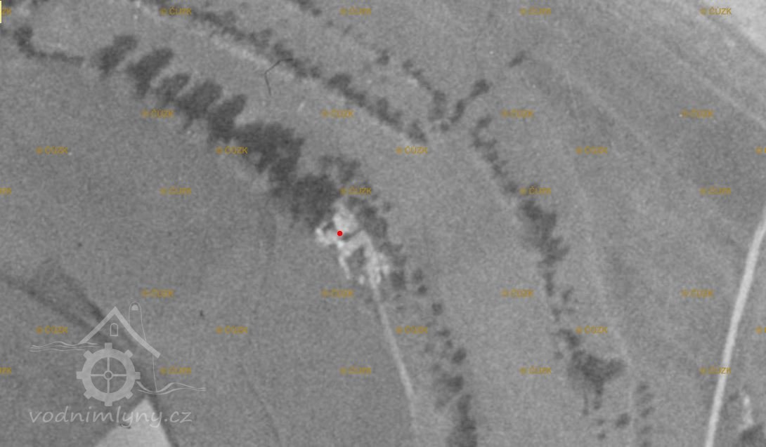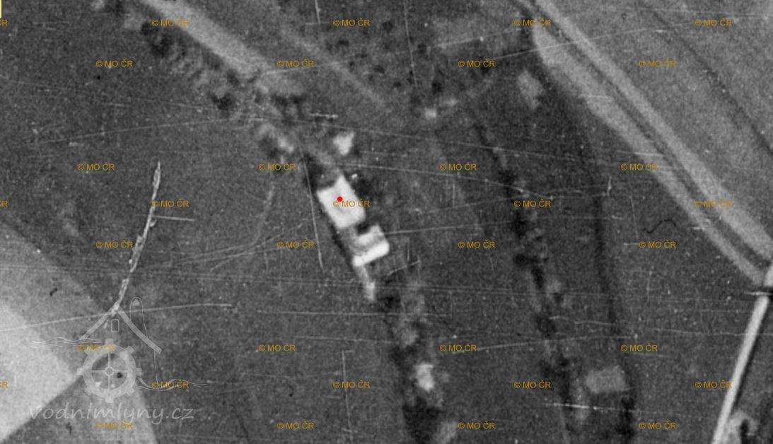 Dle leteckého snímkovávńí v roce 1950 jsou z mlýna už jen trosky, vroce 1954 již po mlýnu není ani stopy.