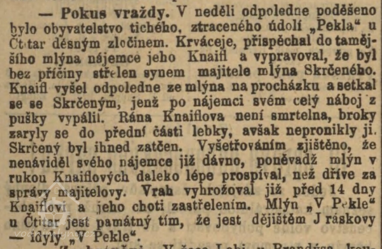 1884 - nájemce mlýna Knaifl, majitel Skrčený.