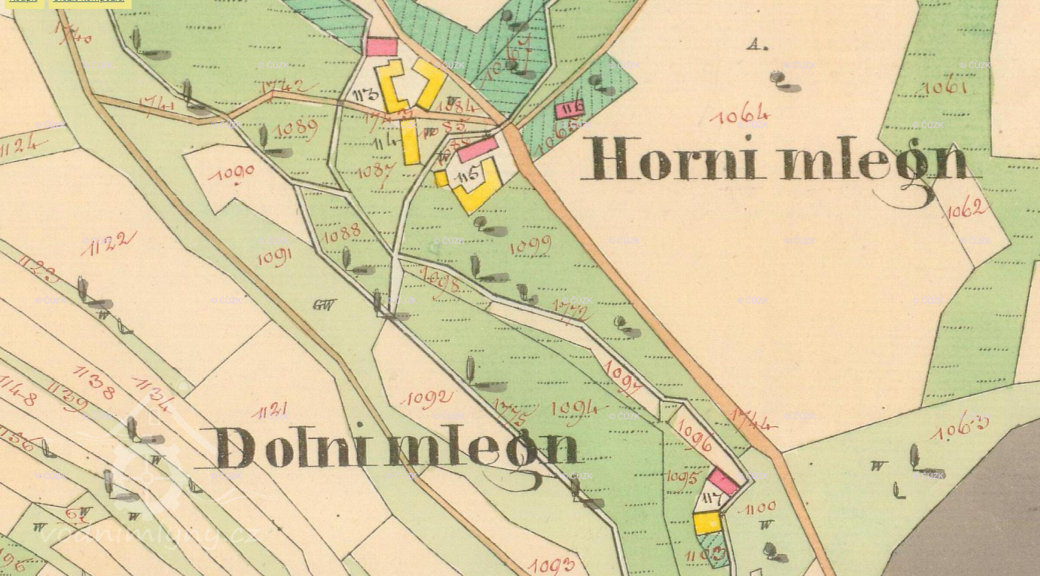 Mlýn, ke kterému vedla cesta osázená olšemi, byl v roce 1774 prošacován za 400 rýnských zlatých6. Podle trhové smlouvy byl JOSEF ZÁBOJNÍK povinen vyplatit své sourozence. Sestře Rosině odvedl 120 zl., druhá sestra Anna již byla po smrti, tedy podíl náležel jejím dětem Anně a Marianě, každé 50 zl. Svému stejnojmennému zeti, „který mnohý léta při mlejně pracoval a otci pomáhal“ Josef vyčlenil 80 zl. Do sirotčí kasy panství uherskobrodského byl povinen každoročně odvádět 33 zl., splatných ke svátku sv. Václava.K mlýnu tehdy přináleželi také 2 koně, 2 tažení voli, 8 dojných krav, 1 jalovice, 2 vozy, 2 pluhy a 3 brány.