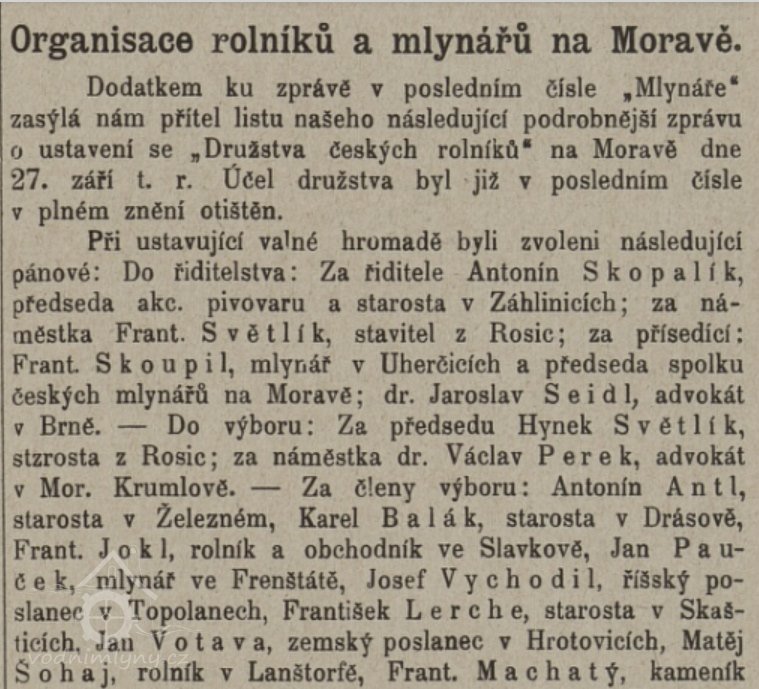 Příjmení mlynářů působících na mlýně: