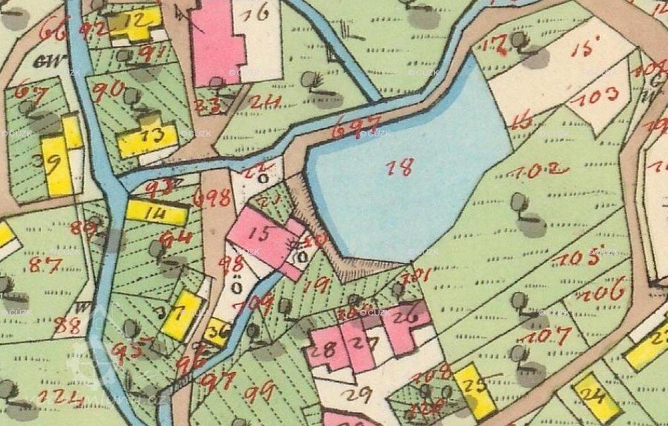1843 majitel Jan Fidler (Fiedler, později starosta) s manželkou Annou od Josefy a Justiny Hejzlarových