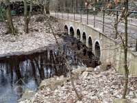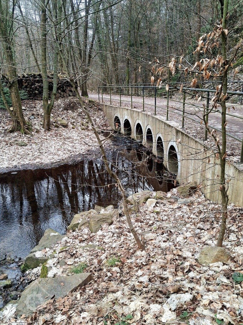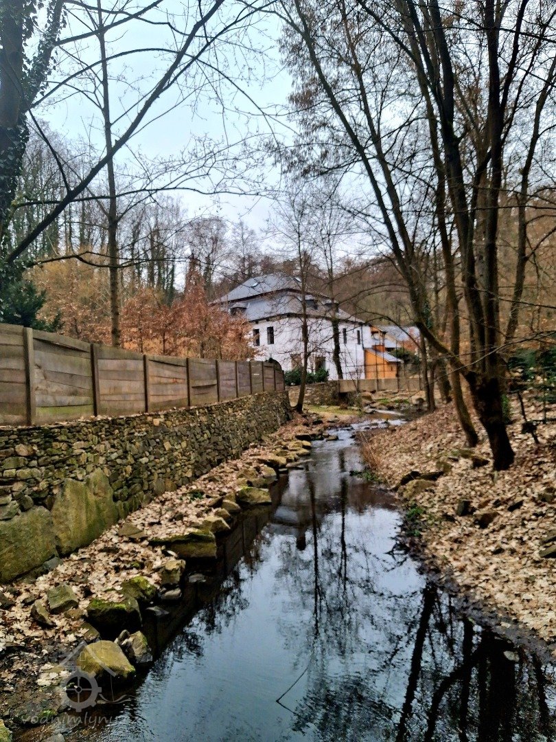 Náhon pro Denemark vede od mostu pod cestou a zdí z pravé strany, náhon pro další mlýn začíná pod mostkem u parkoviště a vede rovnoběžně s cestou po levém břehu