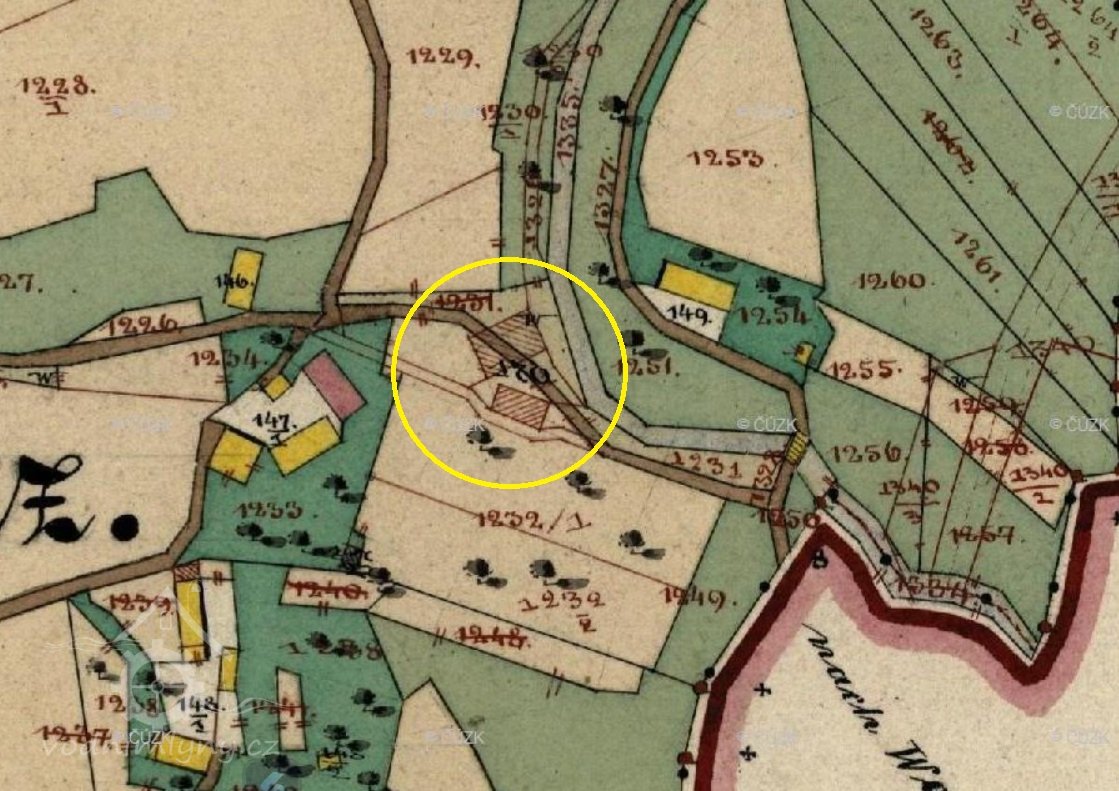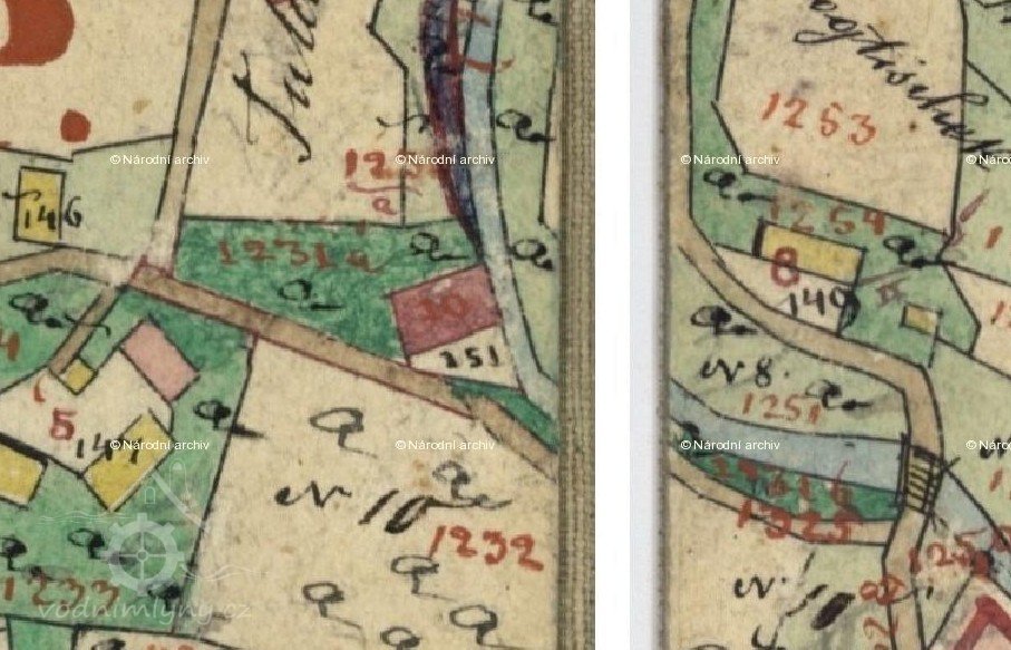 Mlýn je zakreslen pouze na skice k císařskému otisku. Znamená to, že byl v té době ve stavbě.