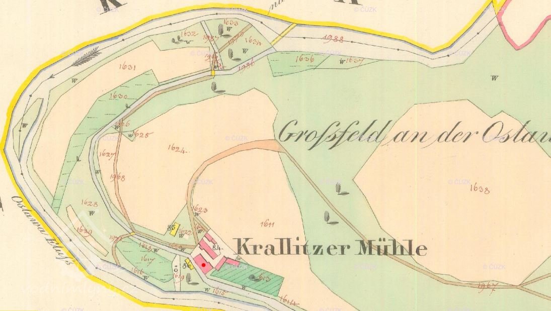 1747 od hraběte z Kufsteinu koupil Josef Tkaný za 400 zl. s rybářským právem a 26 měřicemi (5,2 ha polí), roční činže 132 zl. z mlýna, 24 zl. z olejny, vodné ze stavu 24 zl., z polí a luk 8 zl., místo roboty 5 zl. Mlynář byl povinen dodávat do zámku ryby a raky, kopu za 6 krejcarů, funt ryb za 3 kr.