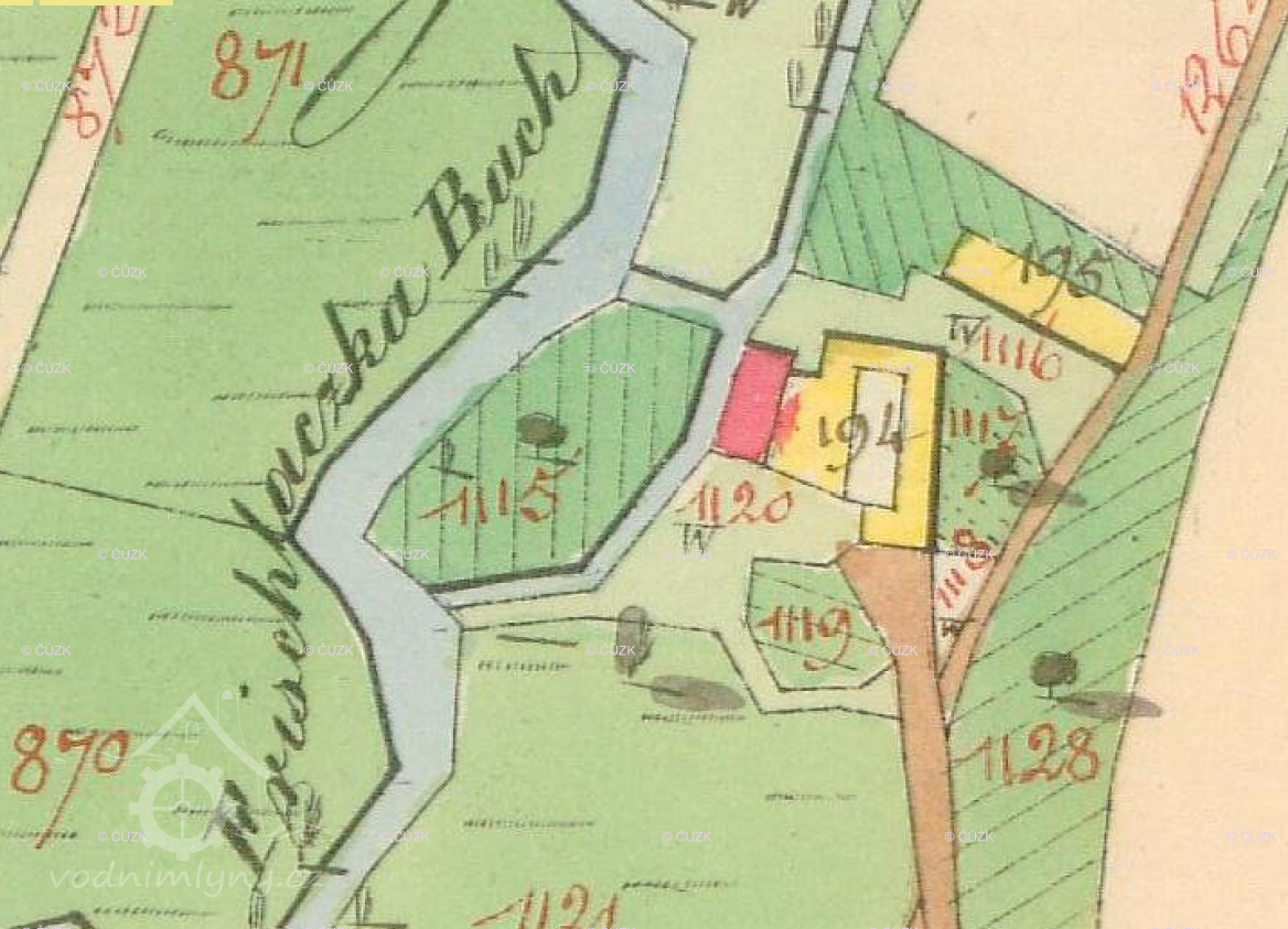 Popis1930: 1 kolo na svrchní vodu, hltnost 0,13 m3/s, spád 4,3 m, výkon 4,5 HP