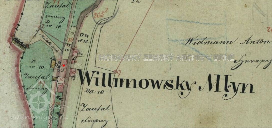 Mlýn má ve štítě letopočet 1369, kolem r. 1556 byl v těchto místech zaznamenán svobodný dvůr mana Matěje, fořství a Vílímovský mlýn. Podle ověřených pramenů pochází však první písemná zmínka o mlýně až z r. 1620.