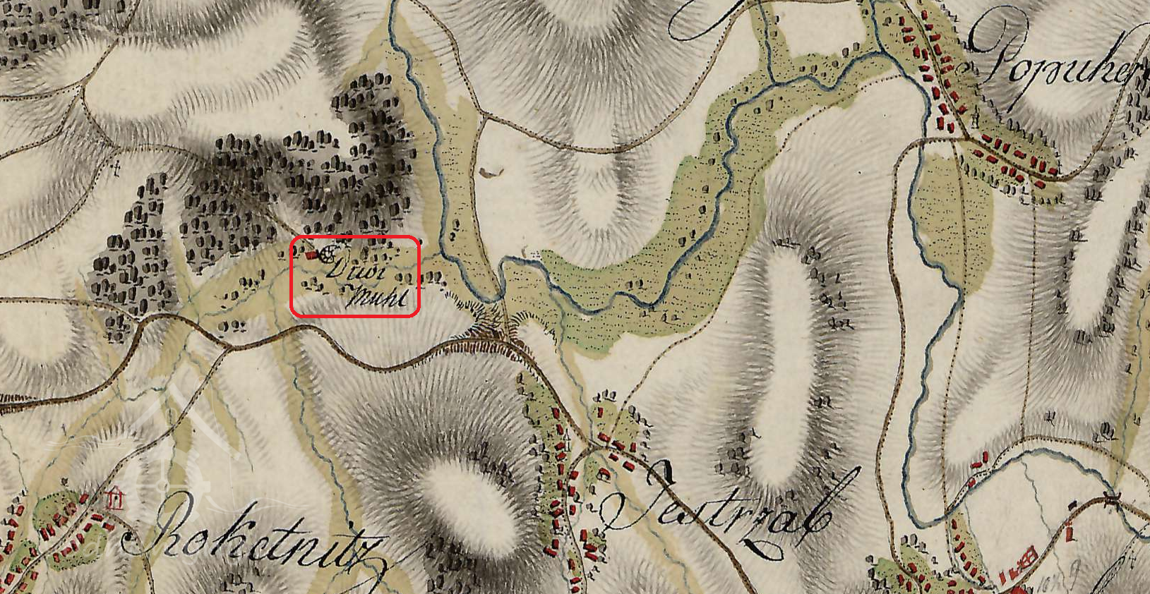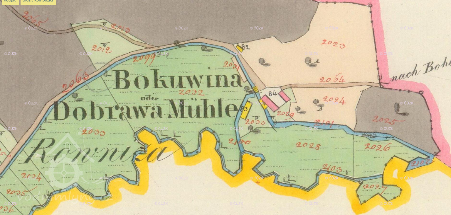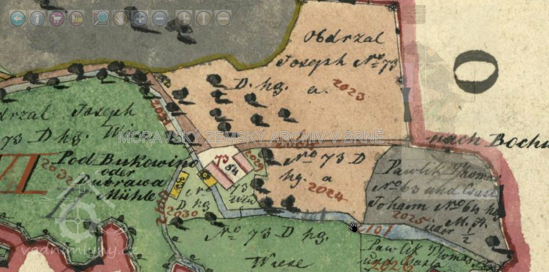 Popis1930: 1 kolo na svrchní vodu, hltnost 0,06 m3/s, spád 5,5 m, výkon 3 HP
