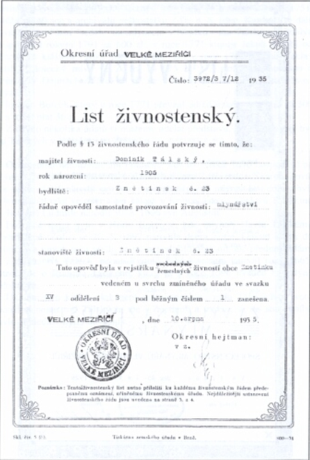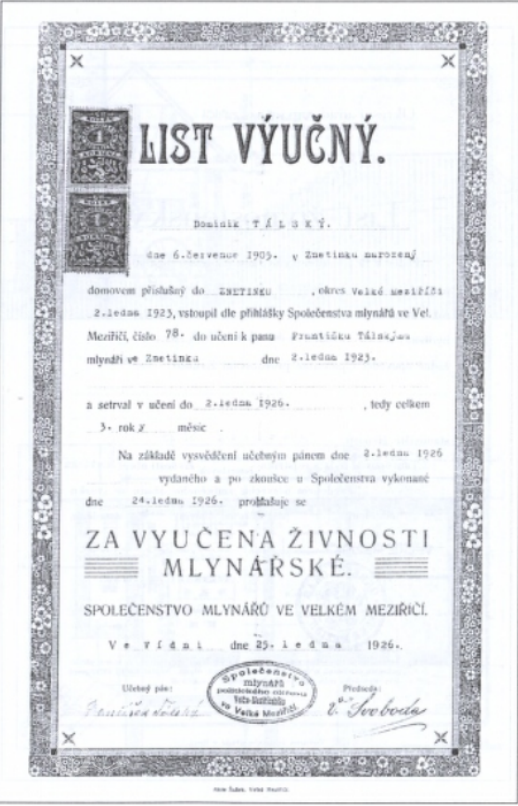 1936 manželé Tálští postoupili mlýn synovi Dominiku Tálskému a jeho nastávající Anežce Šmardové z Pokojova za 70.000 Kč (30.000 hotově, zbytek na zajištění doživotního výminku)