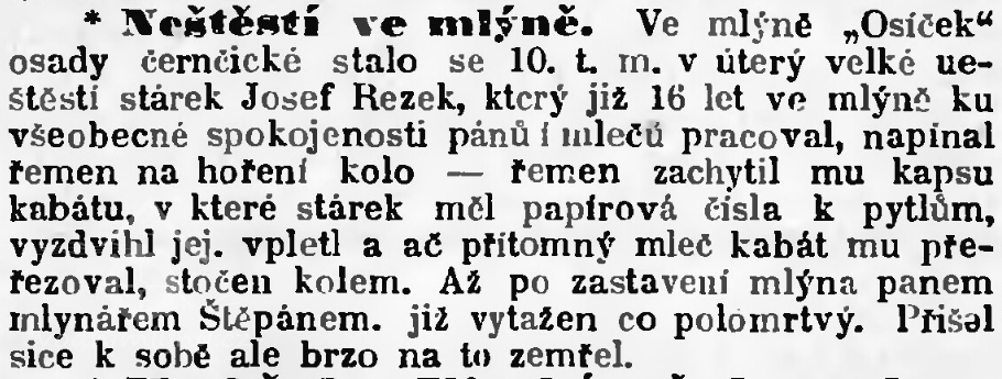 Mlynář Štěpán z Osička roku 1778 vedl tajné rakouské vojsko (generál Wumser) do tyla pruského tábora ve Václavicich, za to prý dostal pytel dukátů — kvůli tomu se očekávala pomsta, ale naštěstí se nic nestalo.
