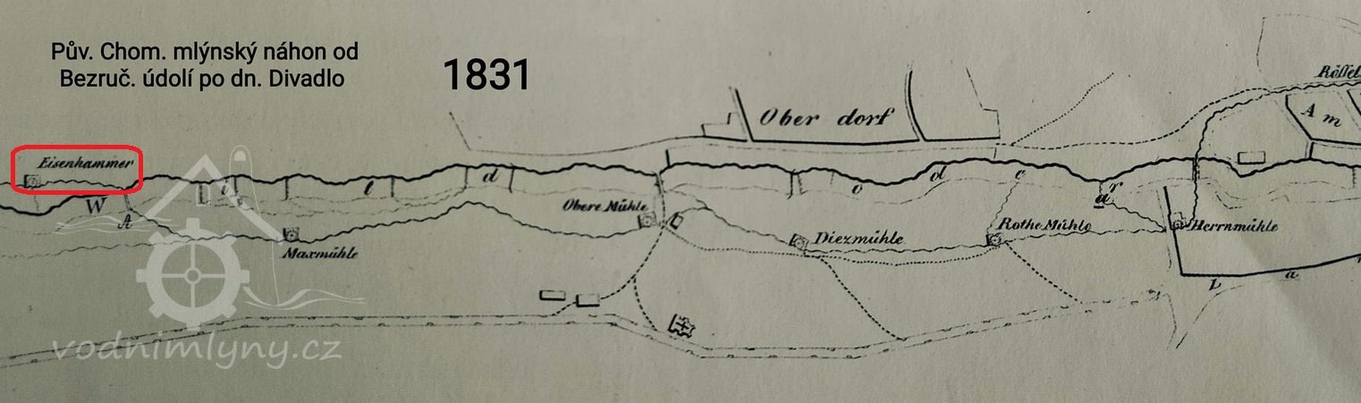 Schwartzmühle jako porvé zmíněn již roku 1710. Během poloviny 19. století přebudován na vodní hamr.