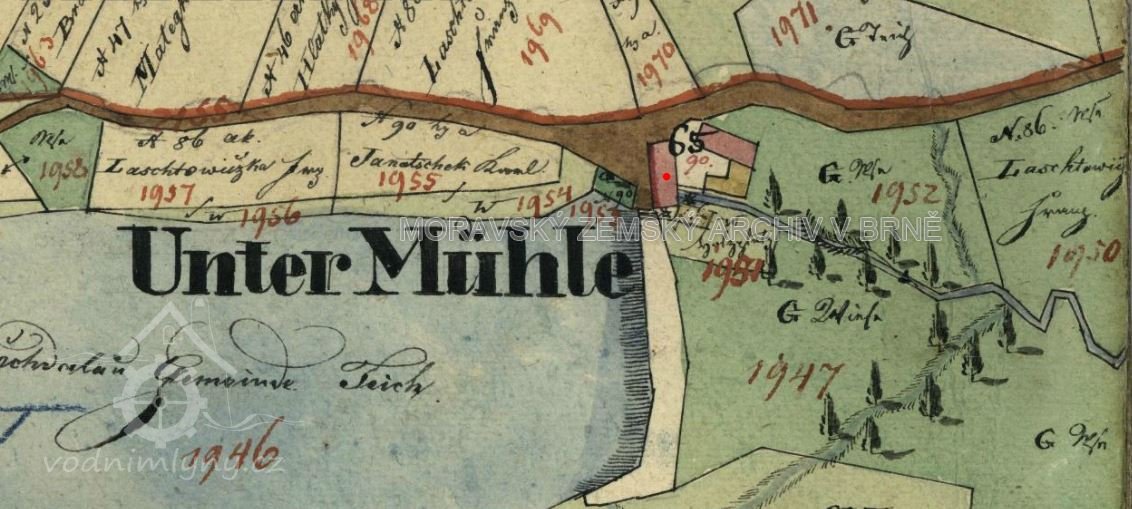 Dolní mlýn v Bohdalově pod Dolnomlýnským neboli Kněžským rybníkem je uveden na I. a na II. vojenském mapování. Patřil k majetku církve.