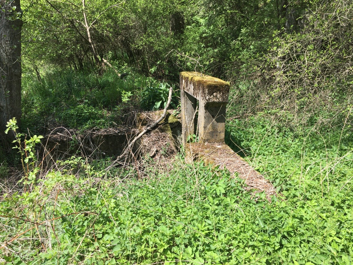 2020 - Bývalé mlýniště slouží k rekreaci, z původních staveb zůstal zřejmě kamenný sklípek ve svahu a část betonového stavidla.