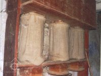 2 kovové válcové stolice a dřevěné kamenné šrotovací složení, dřevěná čistička na mouku
