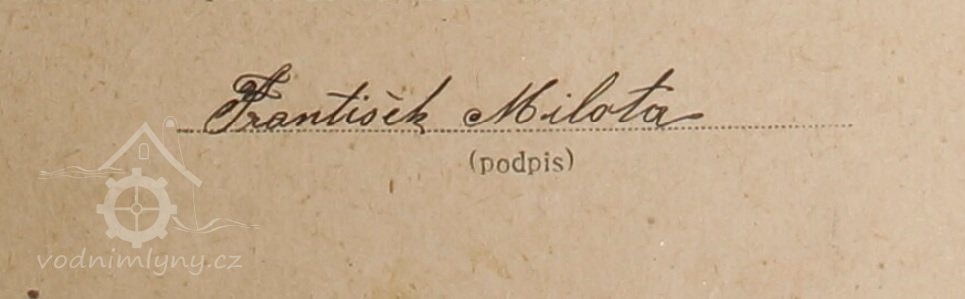 1921 – jediné dochované sčítání obyvatel uvádí Františka Milotu (*1886 Strašeň) s rodinou, služkou, pomocníkem. U mlýna je i pekárna.