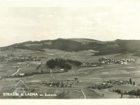 K roku 1849 je v obci uváděno 560 obyvatel, Strašín tehdy čítal 62 popisných čísel. Hospodařilo tu 5 mlynářů. Od roku 1850 začínají v dolní části obce na vykácených mytích pod lesem vznikat nové domy. Z nich se postupně zrodila nová část Strašína s názvem Lazna (od staročeského slova „láz“ – pozemek na samotě u lesa).