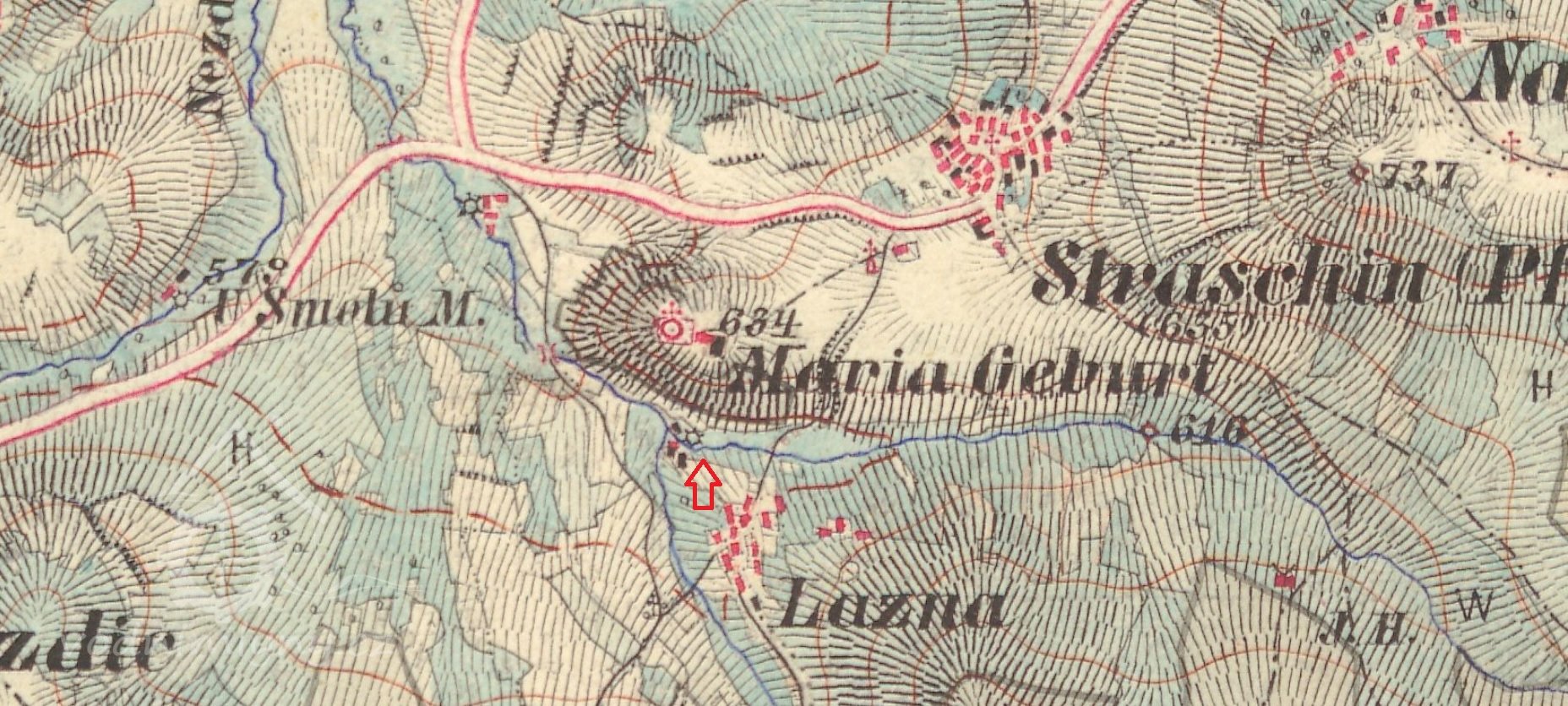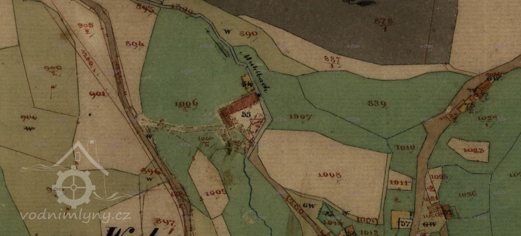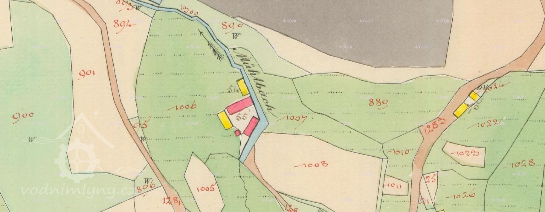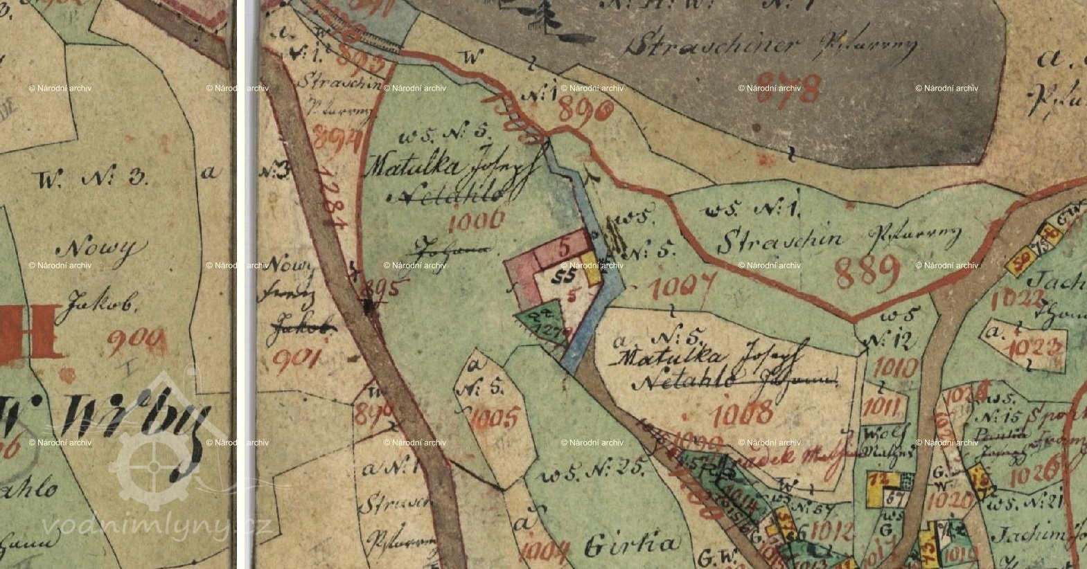 1837 –  č.p. 5:  majitelem je Josef Matulka, dřívější majitel Jan Netáhlo. Zděná budova mlýna ve tvaru L s jedním kolem, do tvaru U doplňuje ještě spalná budova pily s jedním kolem. Na originální mapě není zakreslena pila, u mlýna je rybníček.
