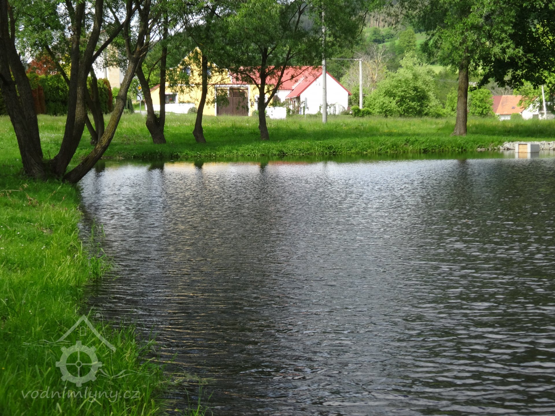 Voda potoka Jánského protékají nádrží na kat.č.683 a částečně na kat.č.687 vedena je přímo do zdrže před mlýnem. Nádrže jsou určeny k nashromažďování vody pro pohon mlýna za dob podnormálního přítoku. Vodní plocha nádrží je 68 m2 a obsah 68 m3. Závodní stavidlo je 30 cm široké a 20 cm vysoké. Vantroky přivádějící vodu ze zdrže před mlýn k závodnímu stavidlu jsou 80 cm široké a 76 cm vysoké. Vodní kolo na svrchní vodu má průměr 4,2 m, šířku 0,5 m s hloubkou korečků 0,24 m. Spád vody činí 4,76 m a při průtoku 74 l/s činí výkon 3,05 HP. Náhradní pohon mlýna není. Pevný bod v podobě kramle zasazen do zdi mlýna.