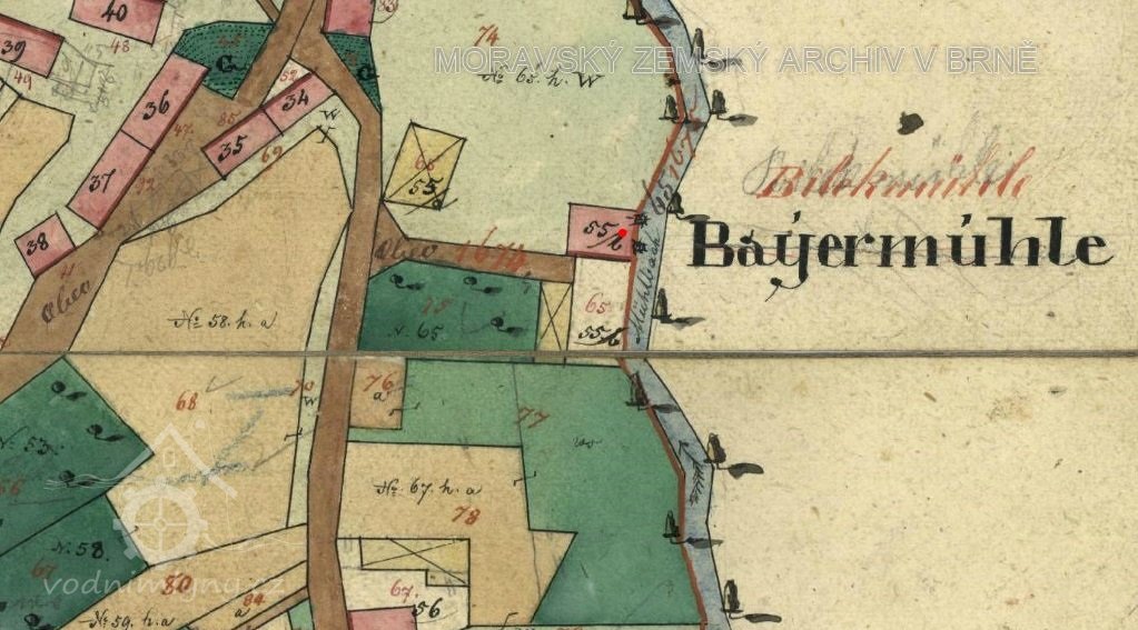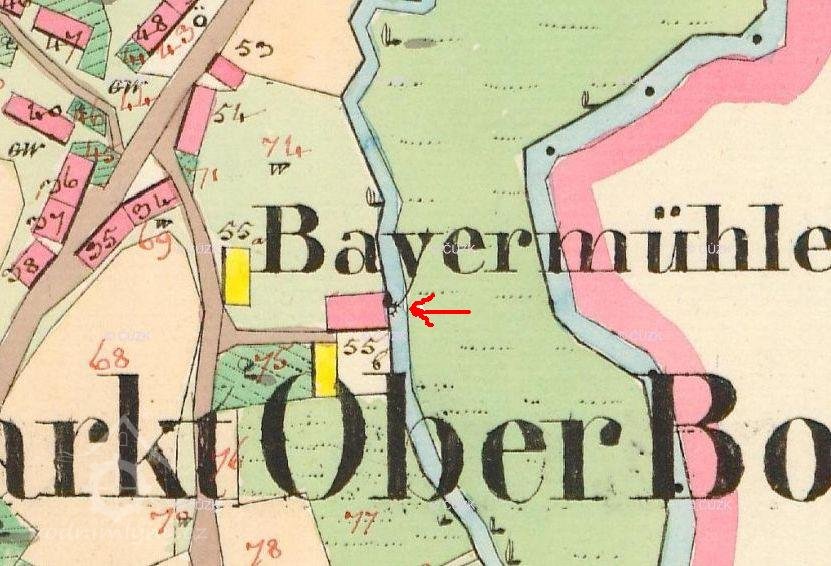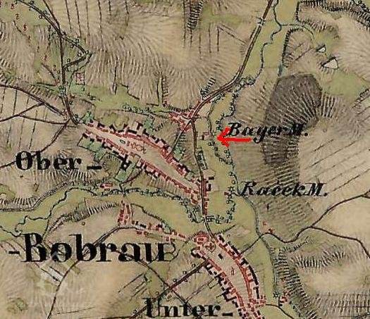 Mlýn je uveden na I. a II. vojenském mapování jako Bayermühle. V matrice oddaných v Horní Bobrové je roku 1713 zaznamenán sňatek Sebastiána Bayera, mlynáře v Horní Bobrové.