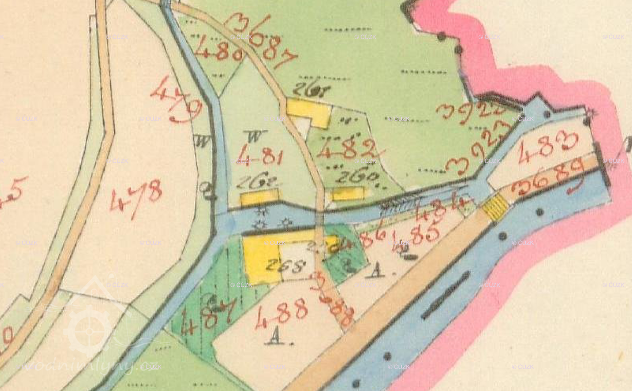 Popis1930: 1 kolo na spodní vodu, hltnost 0,231 m3/s, spád 4,2 m, výkon 1,8 HP