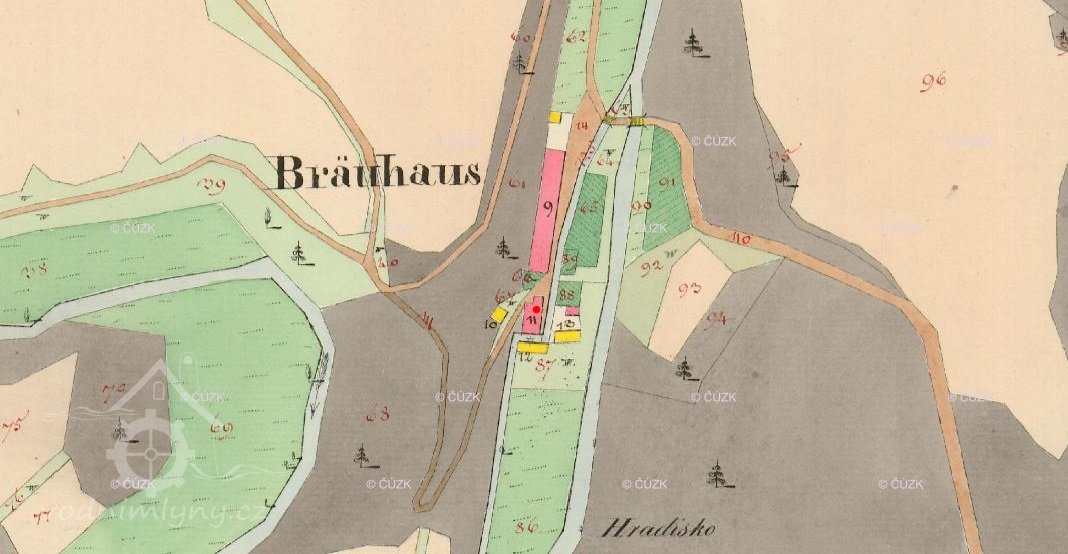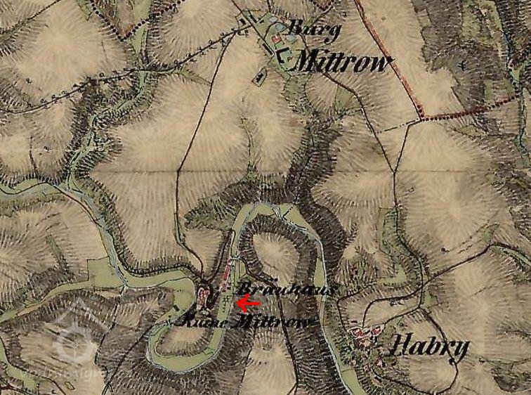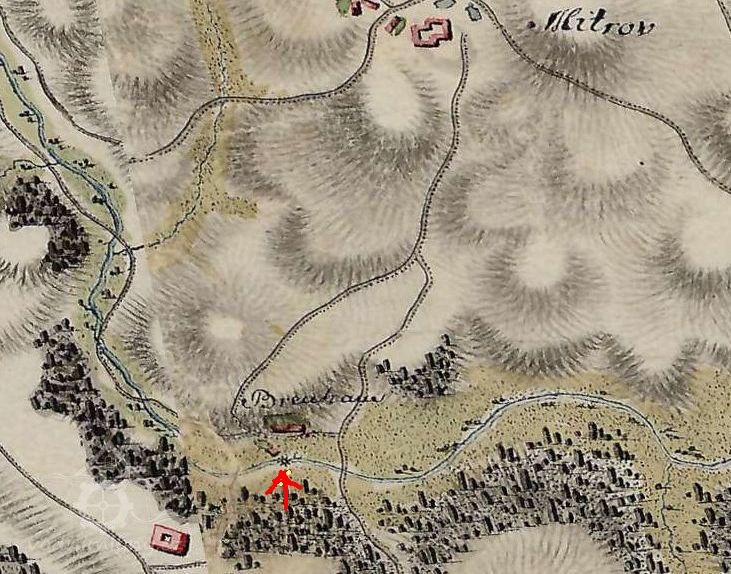 Na I. a II. vojenském mapování je zakreslen mlýn a lihovar pod hradem Mitrovem; lze předpokládat, že mlýn patřil mitrovské vrchnosti.