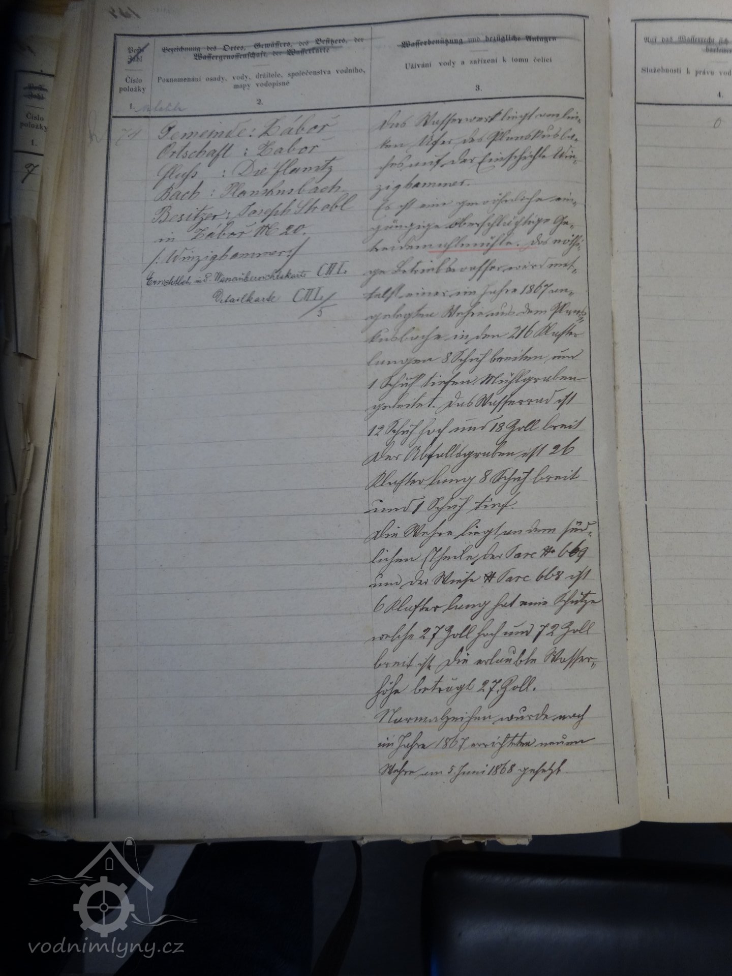 Popis1930: 1 kolo na svrchní vodu, hltnost 0,169 m3/s, spád 4,2 m, výkon 6 hp