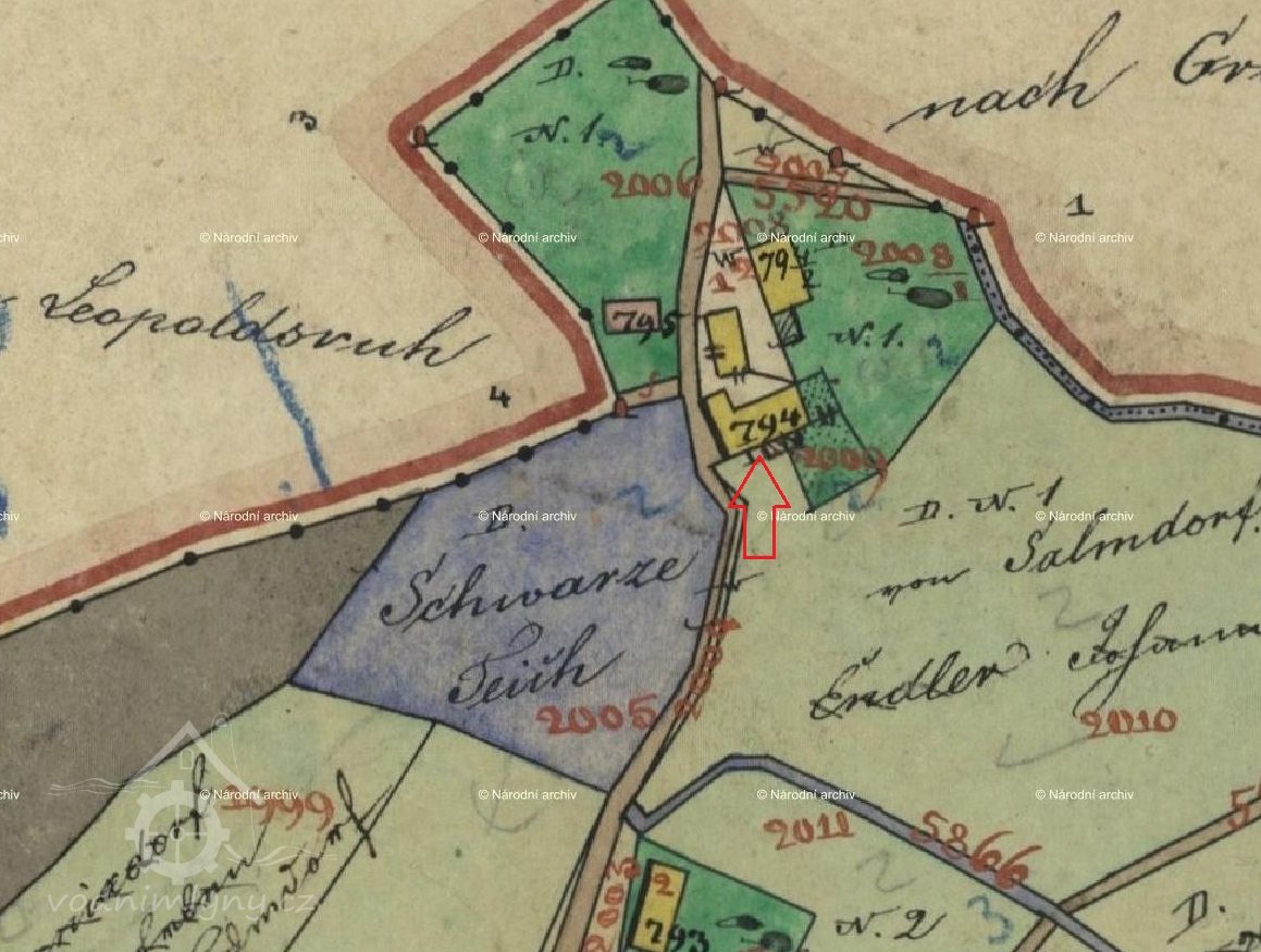 Na mapě I. vojenského mapování je mlýn zakreslen pod názvem Schwarze Mühle.