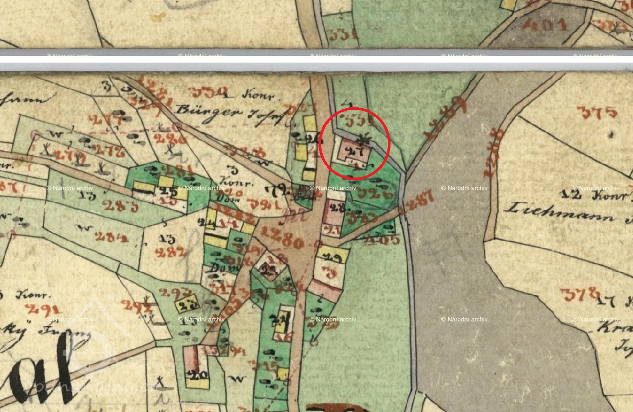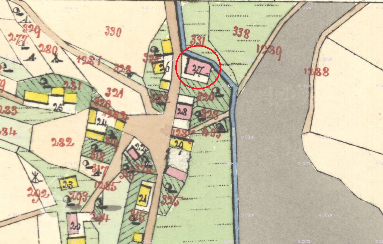 1785 (Josefinský katastr) čp. 4 Daniel Řezba, vlastnil rovněž řadu polností a luk kolem náhonu a rybníka
