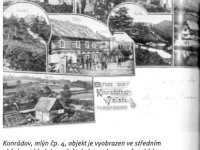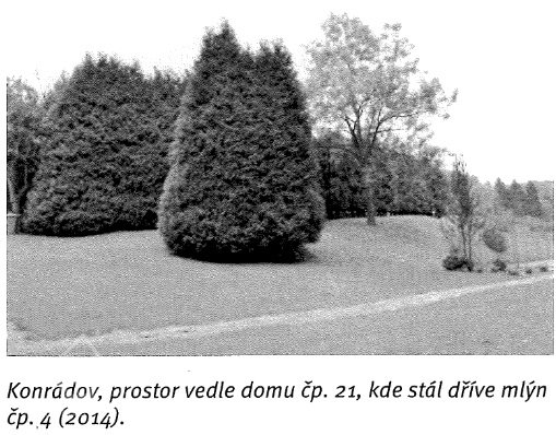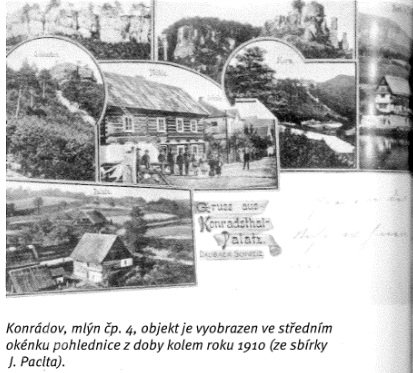po r. 1710 Konrádem Matoušem hrabětem Sparrem , majitelem statku Vidím-Stránka, založena osada Konrádov, mlýn vzniká zároveň