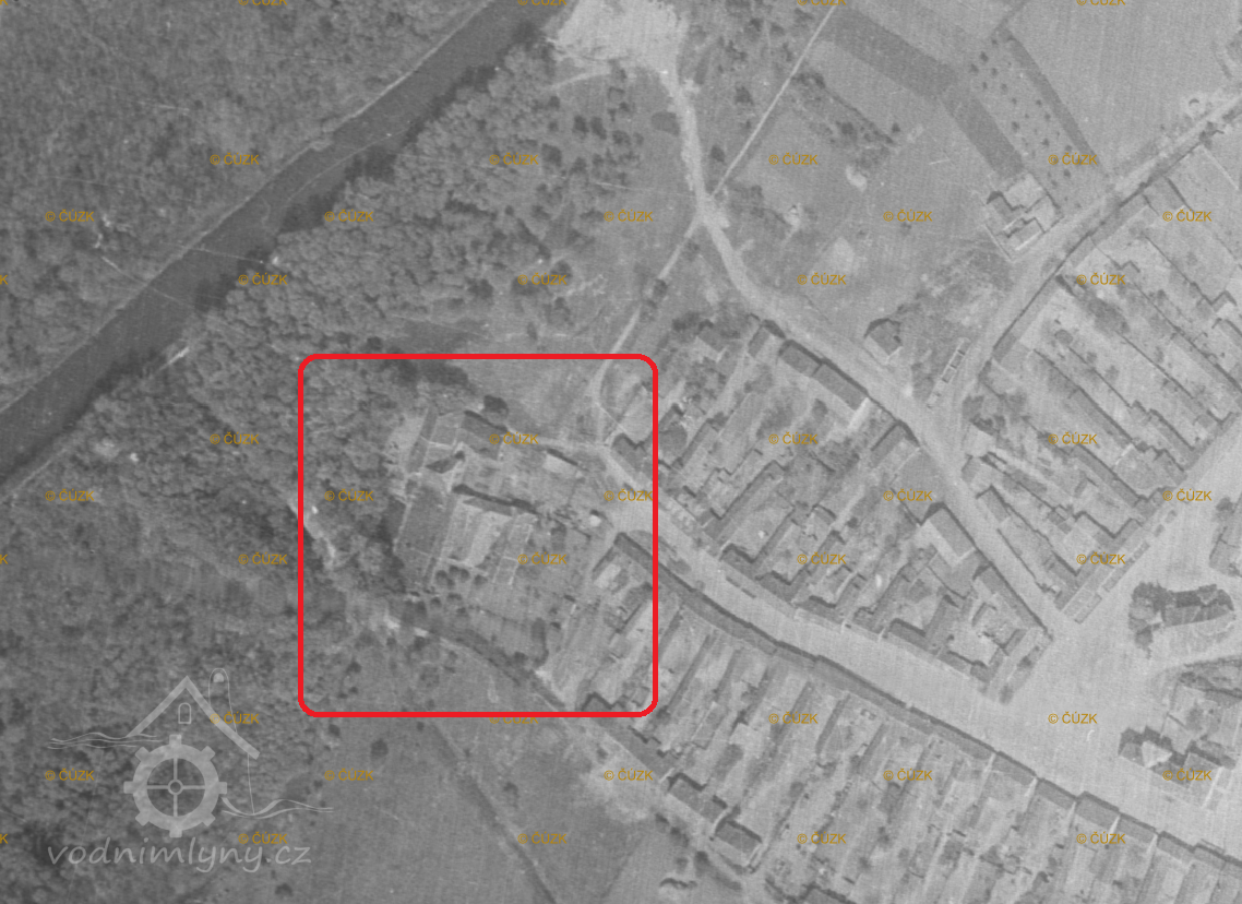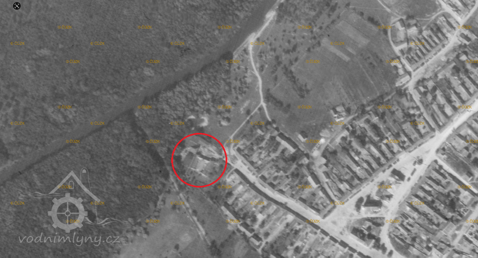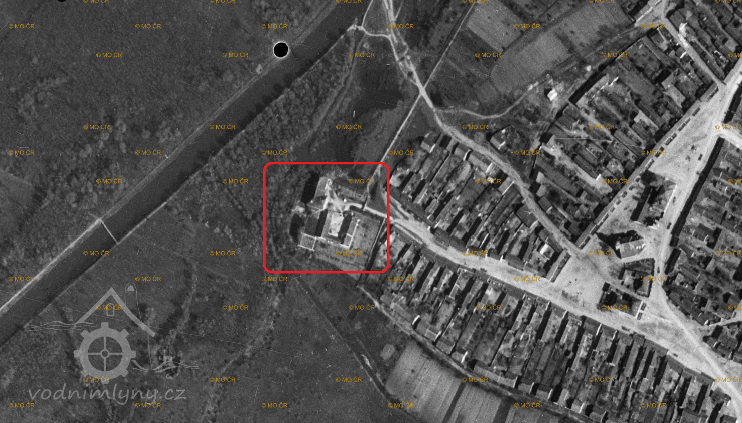 Velký barokní mlýn stával na jihozápadním okraji obce u řeky Dyje.